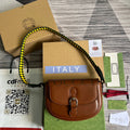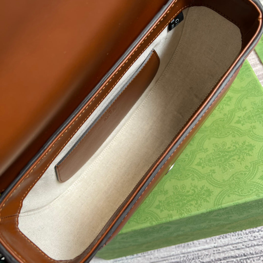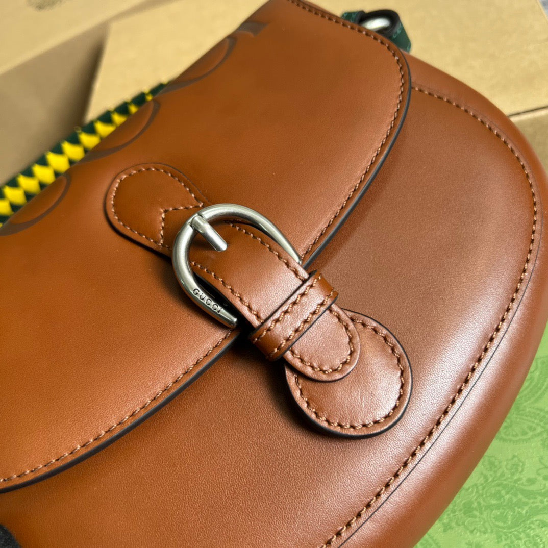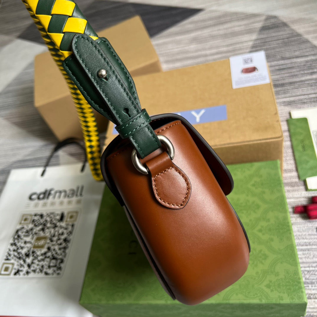 Heritage TLMmtlmts are reinterpreted with a modern twist throughout the GG Aria collection. A symbol of GG’s roots, it has appeared throughout the House collections since the ’40s. After more than eight decades, the material is paired with red and two interchangeable shoulder straps.