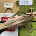 Celebrating the timeless charm of Hollywood, the GG Love Parade reinterprets the classic elements of the House Archives. A fashion accessory featuring a distinctive crescent shape and a G-shape hook closure. Soft materials and heritage metal decorations combine to create a delicate vintage sensibility.