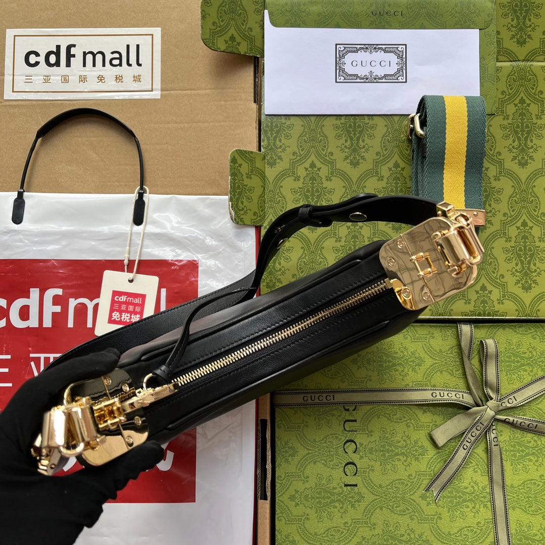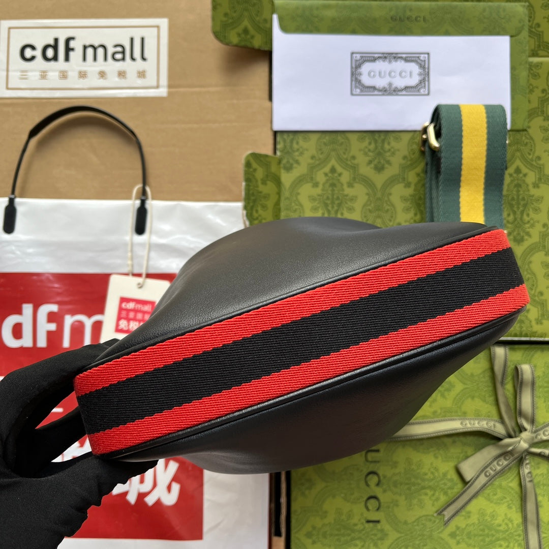 Celebrating the timeless charm of Hollywood, the GG Love Parade reinterprets the classic elements of the House Archives. A fashion accessory featuring a distinctive crescent shape and a G-shape hook closure. Soft materials and heritage metal decorations combine to create a delicate vintage sensibility.
