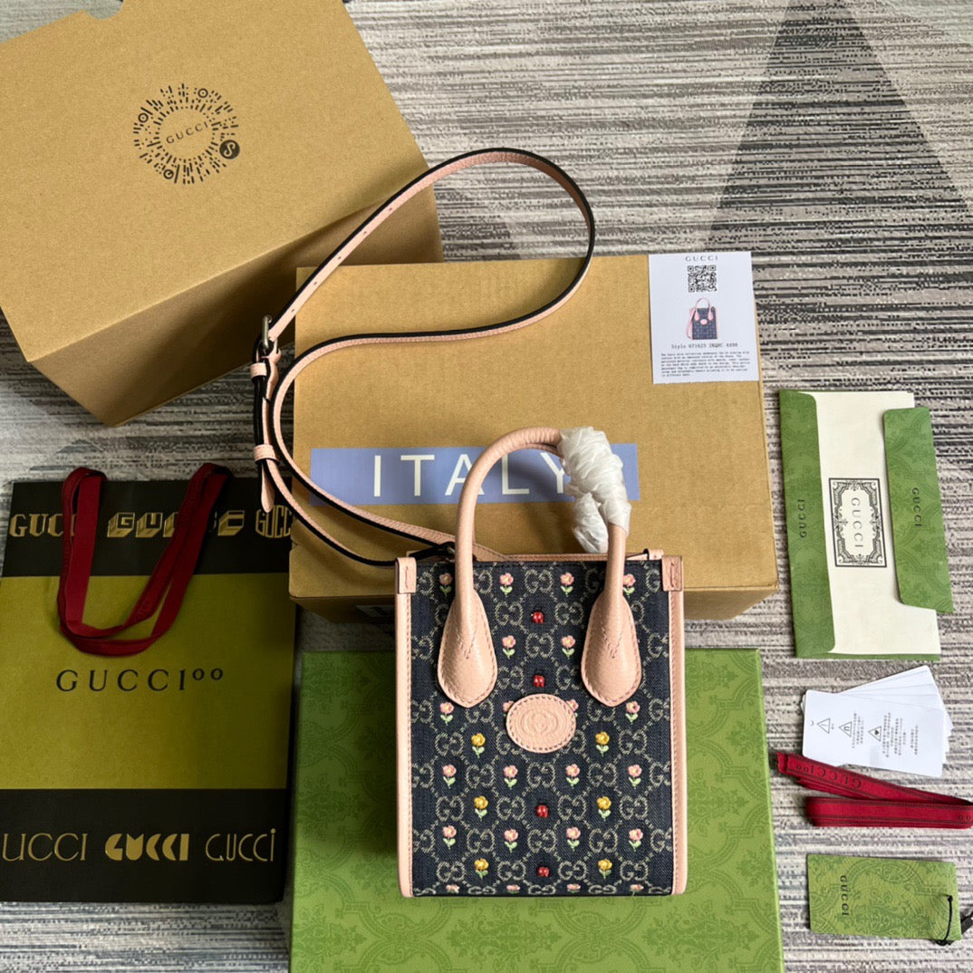 GG Blooming Love Mini Tote Bag Beige For Women, Women’s Bags 6.3in/20cm GG