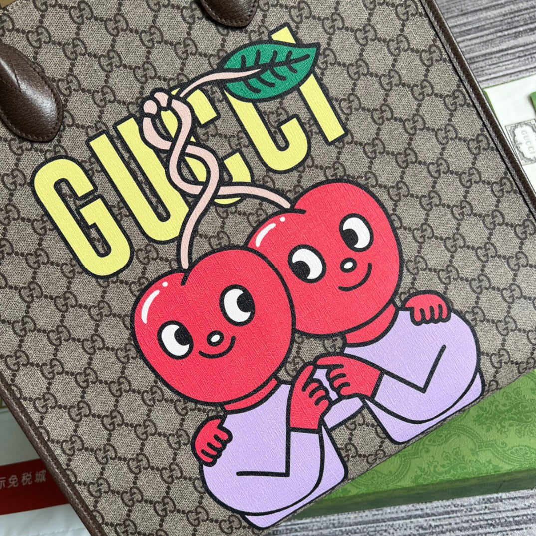 GG Cherry Print Medium Tote Beige For Womtlm, Womtlm’s Bags 15.1in/38cm GG ?703264 U2QAG 8839