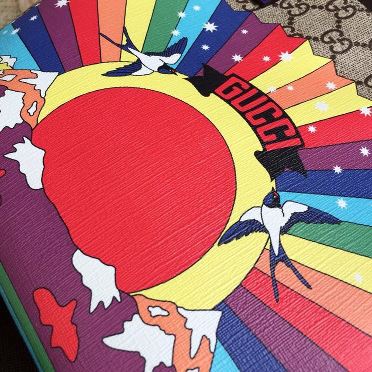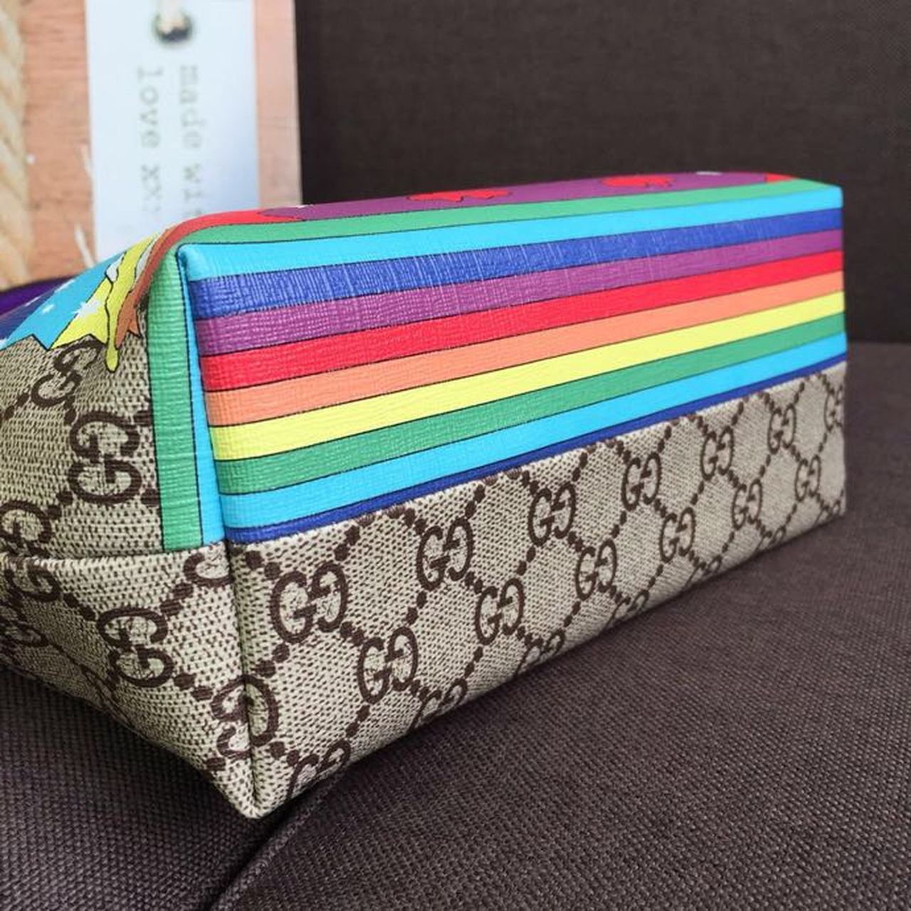 Shop the Childrtlm’s GG rainbow birds tote by GG. A petite version of the adult’s accessory, the GG Supreme tote takes on a playful approach in the kids’ collection. Printed with a colorful rainbow motif