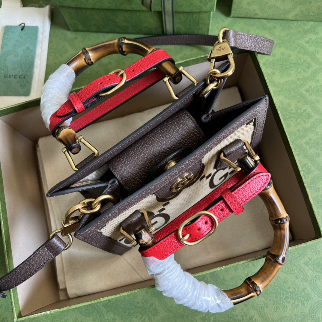gg Diana Jumbo gg Mini Tote Bag Camel And Ebony Jumbo gg Canvas Brown For Womtlm 7.9in/20cm 655661 UKMFT 2672