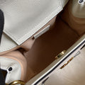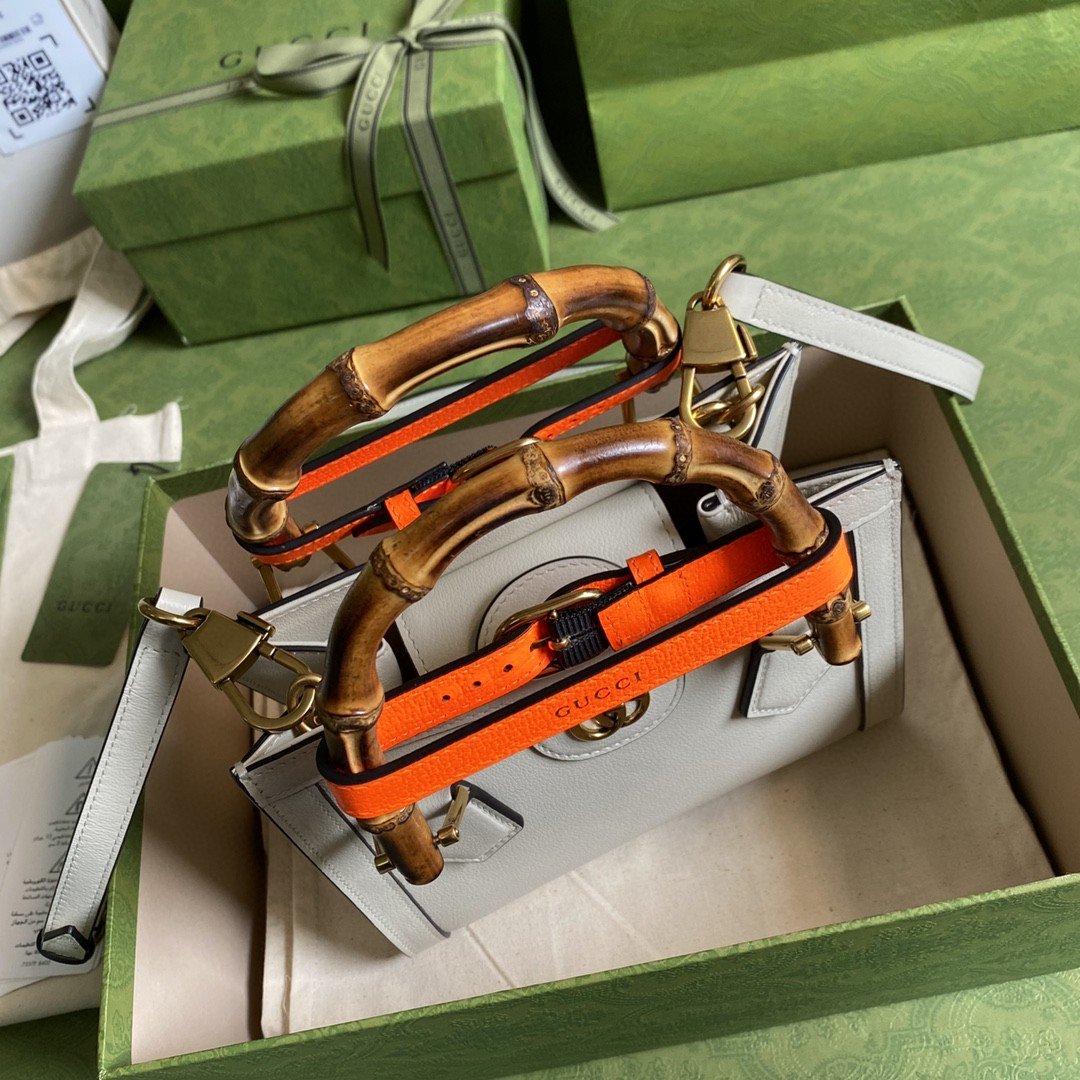 An evolution of a bamboo handle tote first introduced in 1991, the GG Diana represents the notion of style in constant evolution and is reimagined with removable, Orange belts a nod to the functional bands used to keep the handles in shape.?Here, a mini version of the emblematic style is presented in white