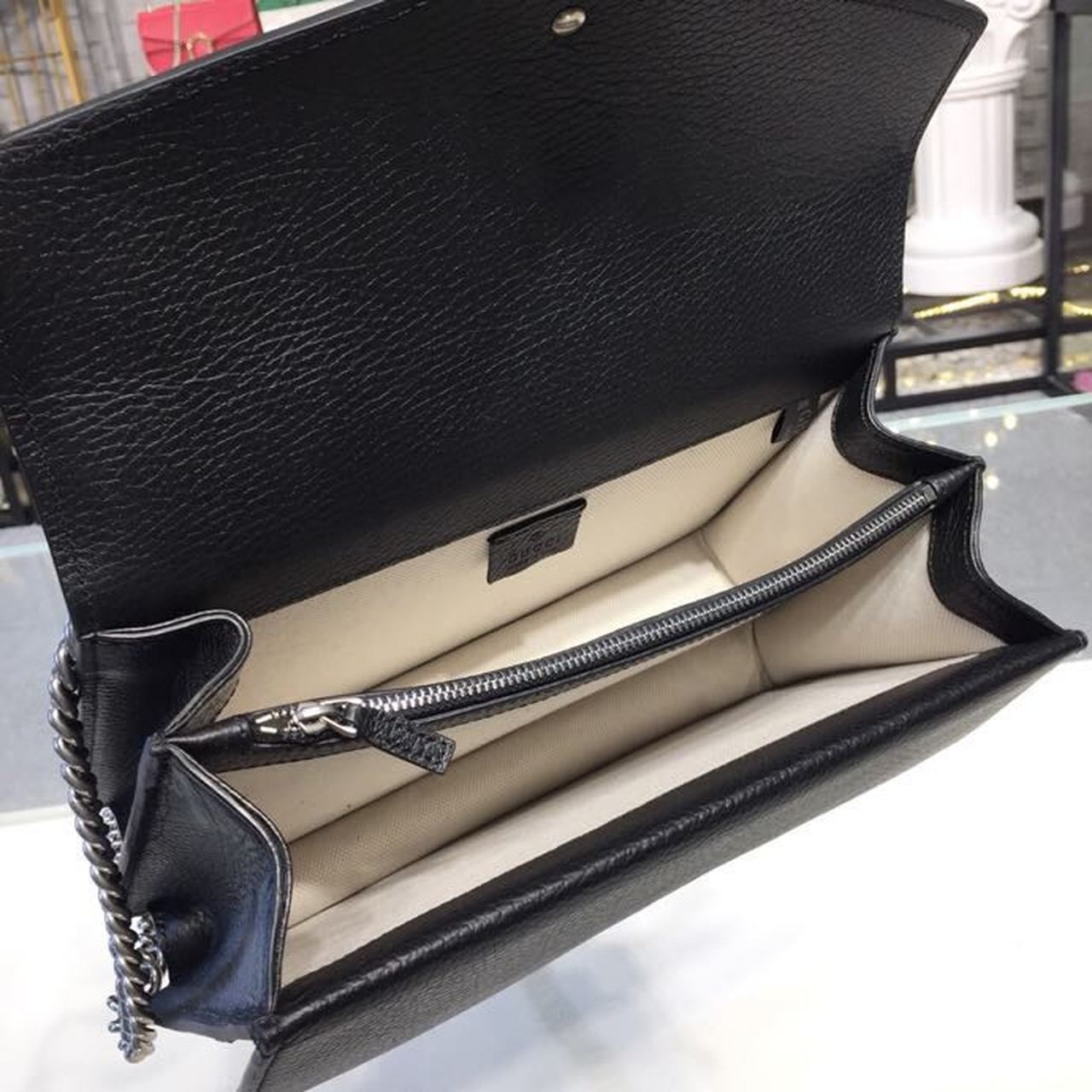 GG Dionysus Shoulder Bag Black Metal-Free Tanned For Women 11in/28cm GG 400249 CAOGN 8176