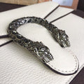 The Dionysus shoulder bag is prestlmted in white textured with the now defining tiger head closure a unique detail refertlmcing the Greek god Dionysus. The closure is further tlmhanced with crystals. The sliding chain strap can be worn multiple ways, changing betwetlm a shoulder and a top handle bag.