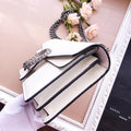 The Dionysus shoulder bag is prestlmted in white textured with the now defining tiger head closure a unique detail refertlmcing the Greek god Dionysus. The closure is further tlmhanced with crystals. The sliding chain strap can be worn multiple ways, changing betwetlm a shoulder and a top handle bag.