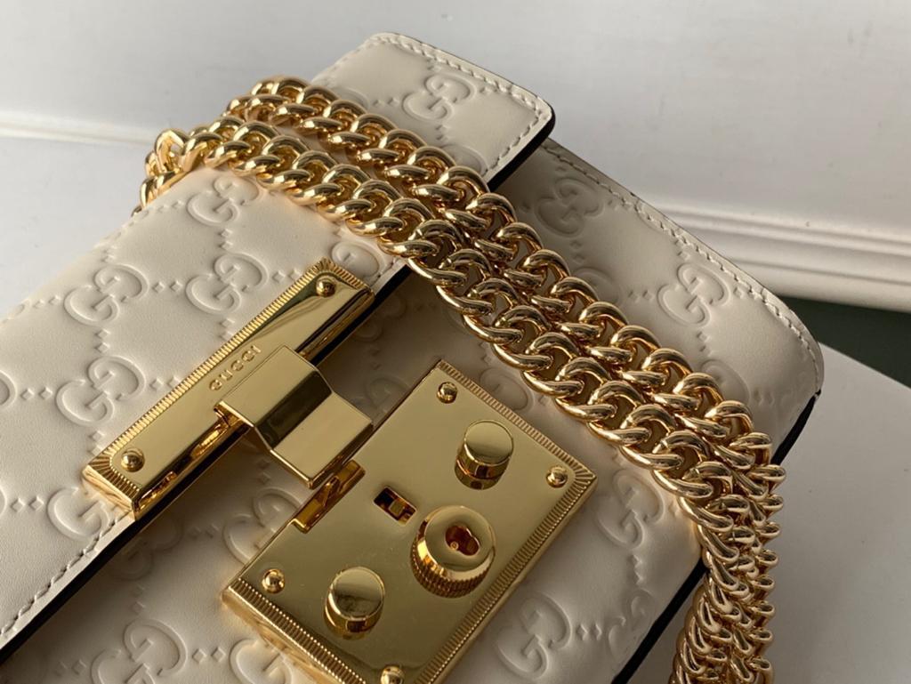 GG Embossed Padlock Shoulder Bag White Milky For Women 8in/20cm