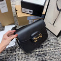 gg Horsebit 1955 Shoulder Bag Black Textured With A Vintage Effect For Women 9.8in/25cm gg ?602204 1DB0G 1000
