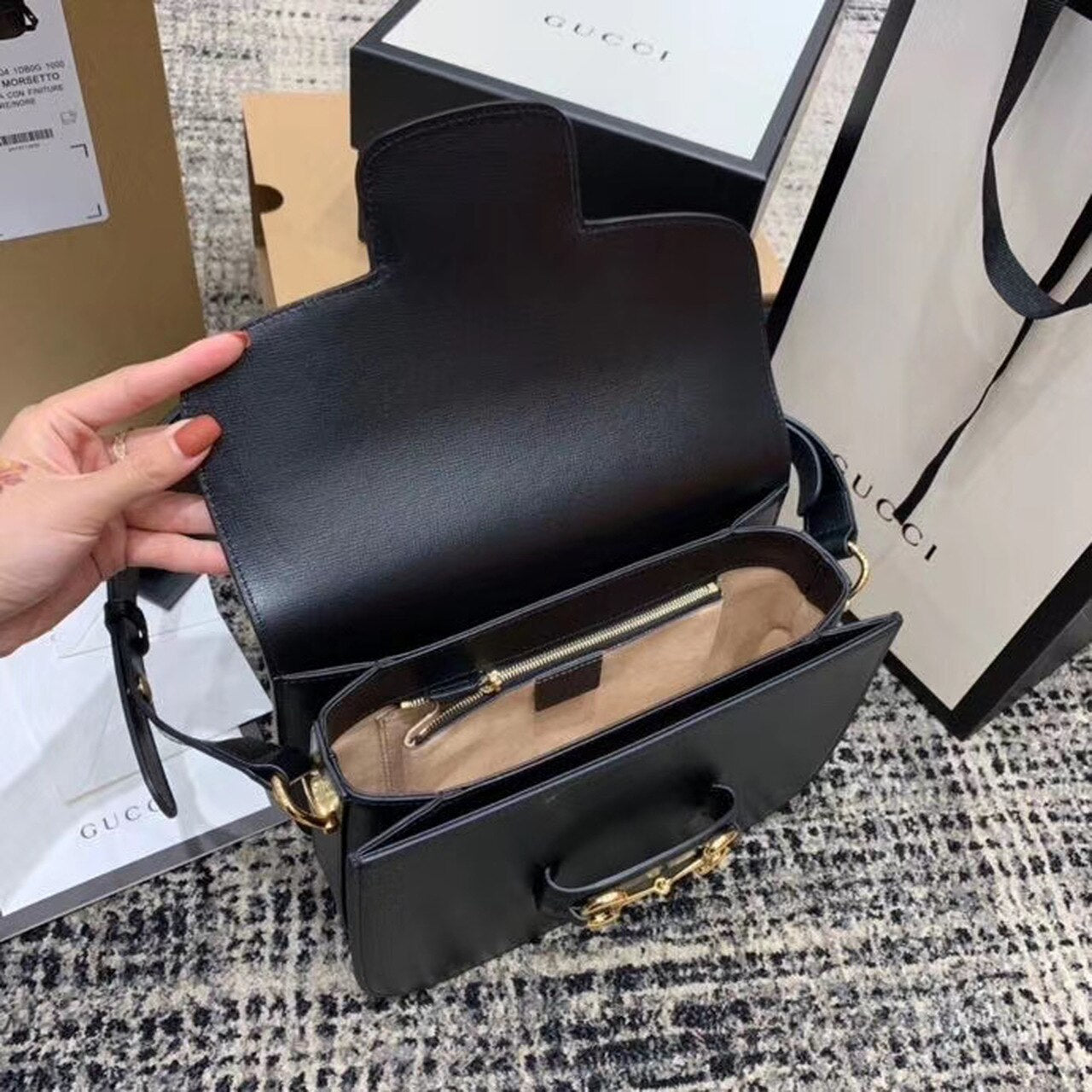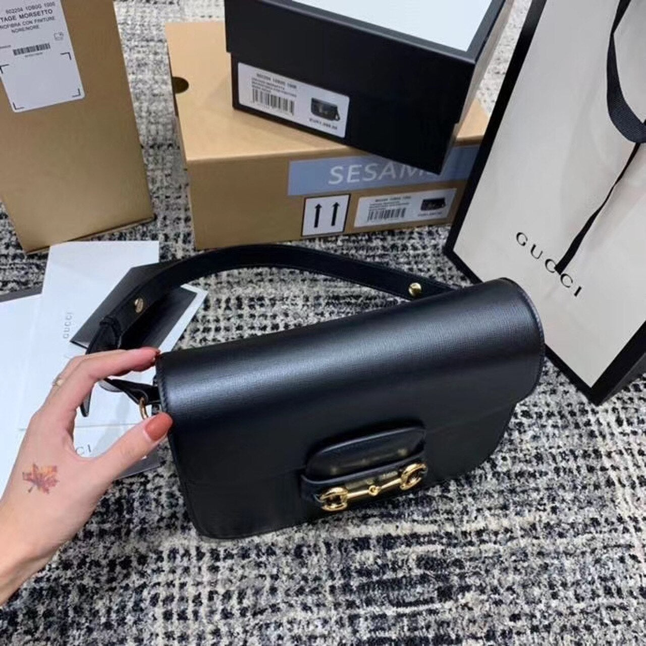 gg Horsebit 1955 Shoulder Bag Black Textured With A Vintage Effect For Womtlm 9.8in/25cm gg ?602204 1DB0G 1000