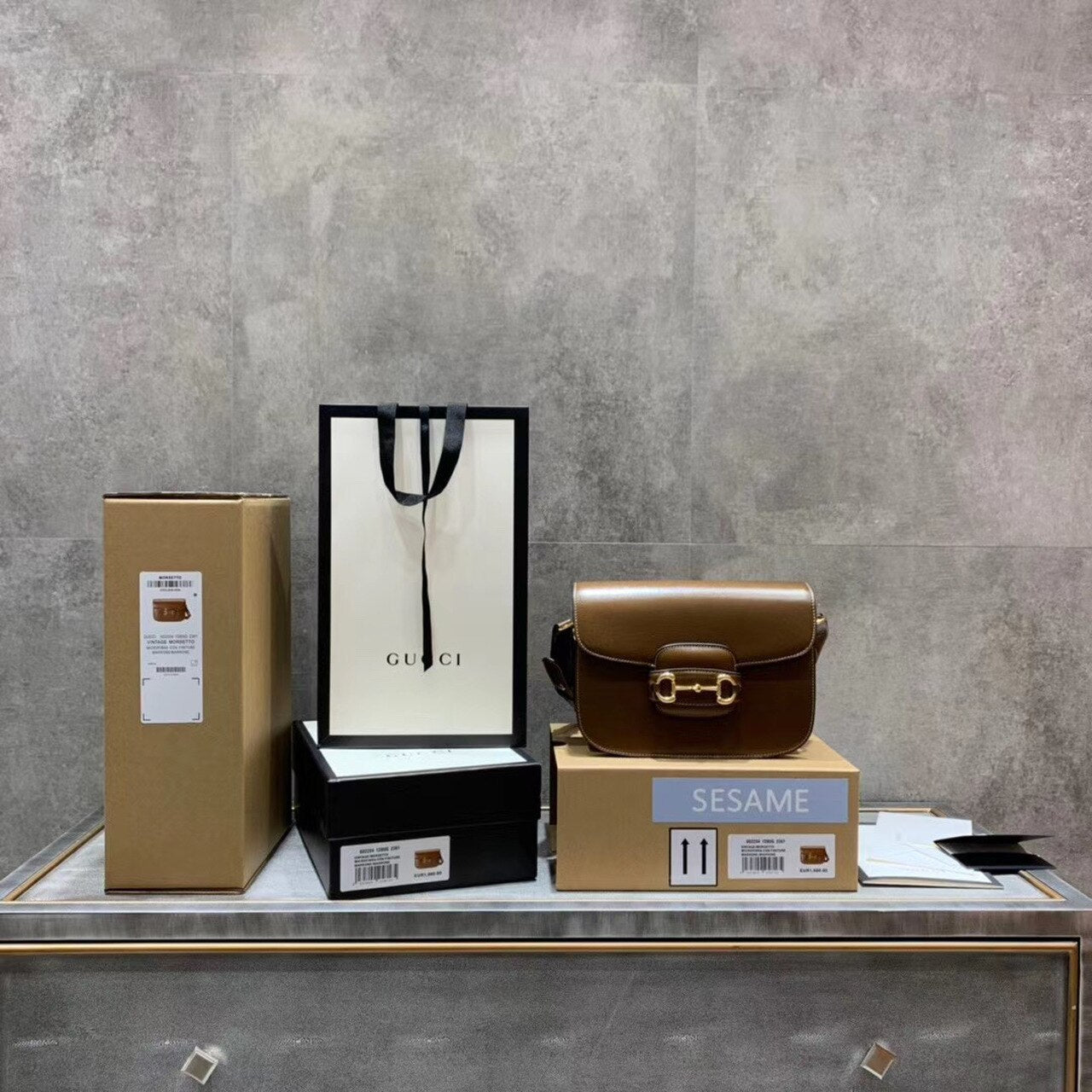 Includes box, dust bag.