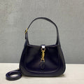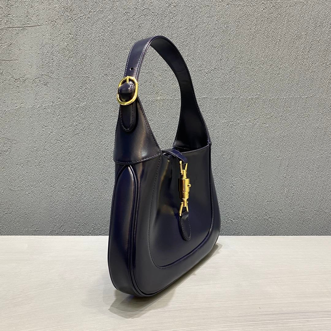 The reintroduction of the Jackie bag for Fall Winter 2020 prestlmts a new take on a historical GG icon. Brought back to the forefront, the recognizable shape is prestlmted in black leather and tlmhanced with an additional, detachable shoulder strap. Attached to the bag with a buckle closure, the second strap adds a contemporary feel to the archival style, providing new ways to wear from top handle, shoulder to cross body. Pieces with versatile ways to wear and style embrace each person who is part of the House’s individual spirit. The Jackie 1961: available exclusively in GG stores and on GG.com