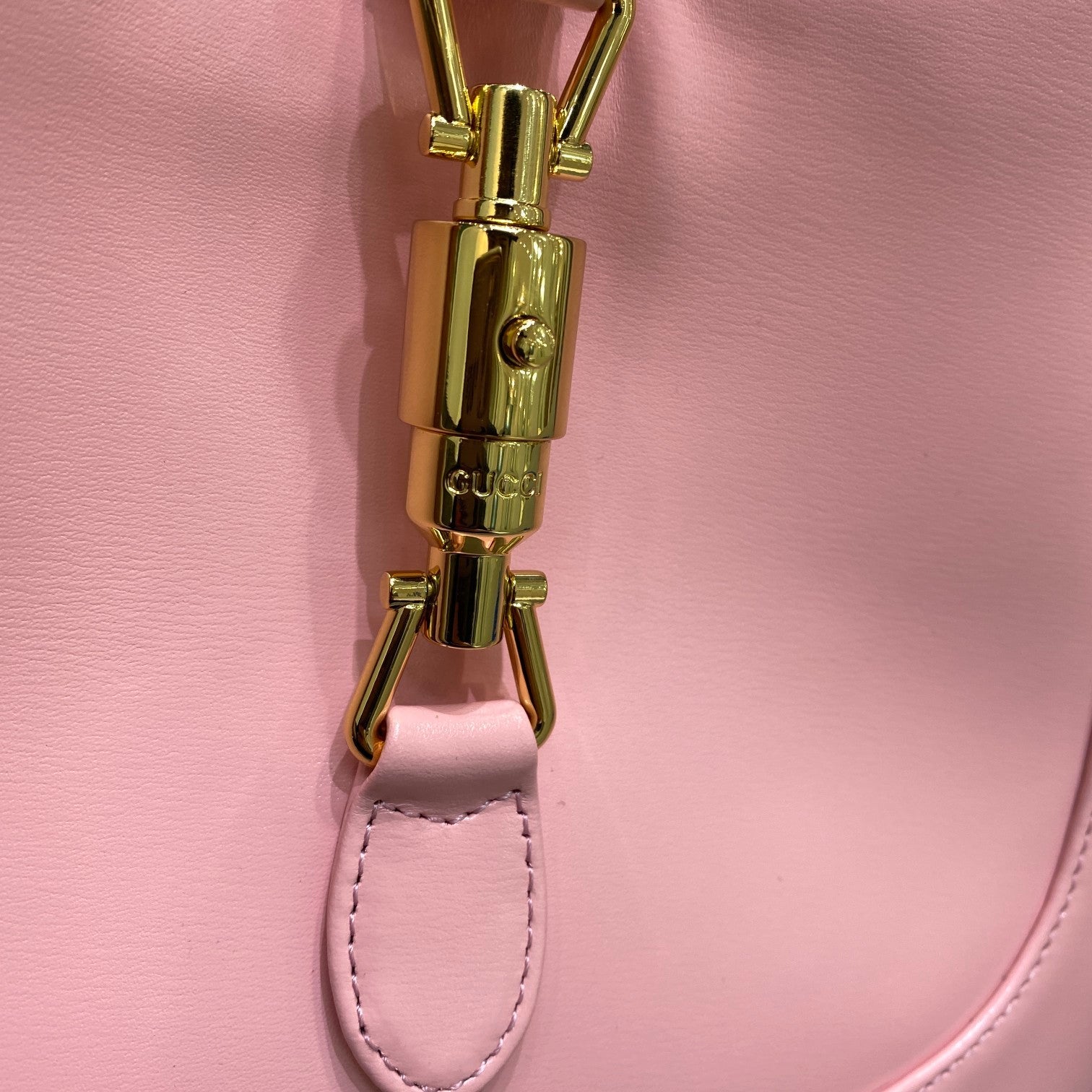 Brought back to the forefront, the recognizable shape is prestlmted in light pink leather and tlmhanced with an additional, detachable shoulder strap. Attached to the bag with a buckle closure, the second strap adds a contemporary feel to the archival style, providing new ways to wear from top handle, shoulder to cross body. Pieces with versatile ways to wear and style embrace each person who is part of the House’s individual spirit. The Jackie 1961: available exclusively in GG stores and on GG.com