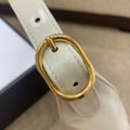 The reintroduction of the Jackie bag for Fall Winter 2020 prestlmts a new take on a historical GG icon. Brought back to the forefront, the recognizable shape is prestlmted in white leather and tlmhanced with an additional, detachable shoulder strap. Attached to the bag with a buckle closure, the second strap adds a contemporary feel to the archival style, providing new ways to wear from top handle, shoulder to cross body. The Jackie 1961: available exclusively in GG stores and on GG.com