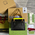 An evolution of a bamboo handle tote first introduced in 1991, the GG Lizaed represents the notion of style in constant evolution and is reimagined with removable, Yellow belts—a nod to the functional bands used to keep the handles in shape.?Here, a mini version of the emblematic style is presented in Black.