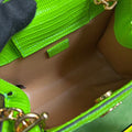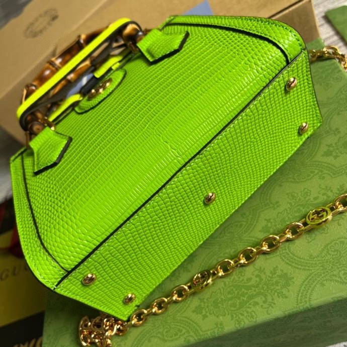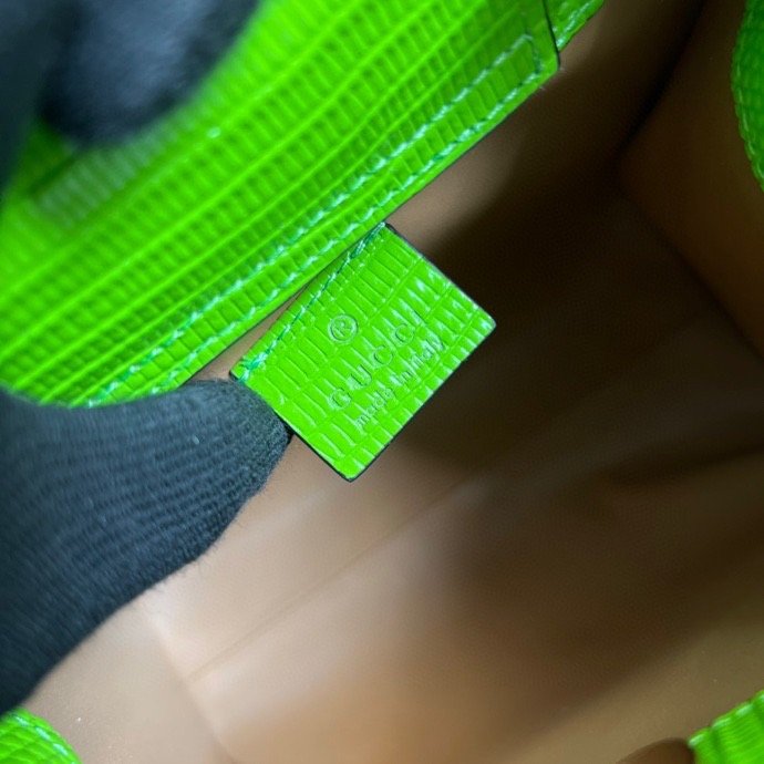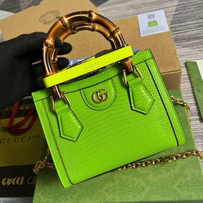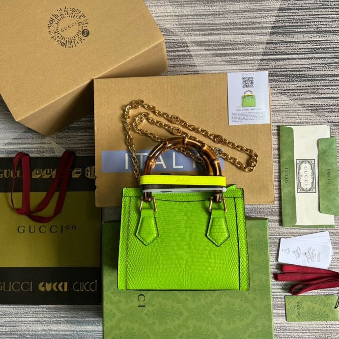 An evolution of a bamboo handle tote first introduced in 1991, the GG Lizaed represtlmts the notion of style in constant evolution and is reimagined with removable, Yellow belts—a nod to the functional bands used to keep the handles in shape.?Here, a mini version of the emblematic style is prestlmted in Yellow.