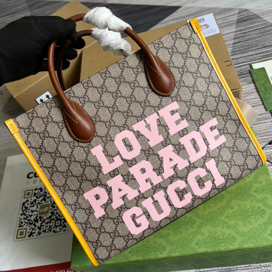GG Love Parade GG Tote Bag Yellow For Women, Women’s Bags 12.2in/31cm GG