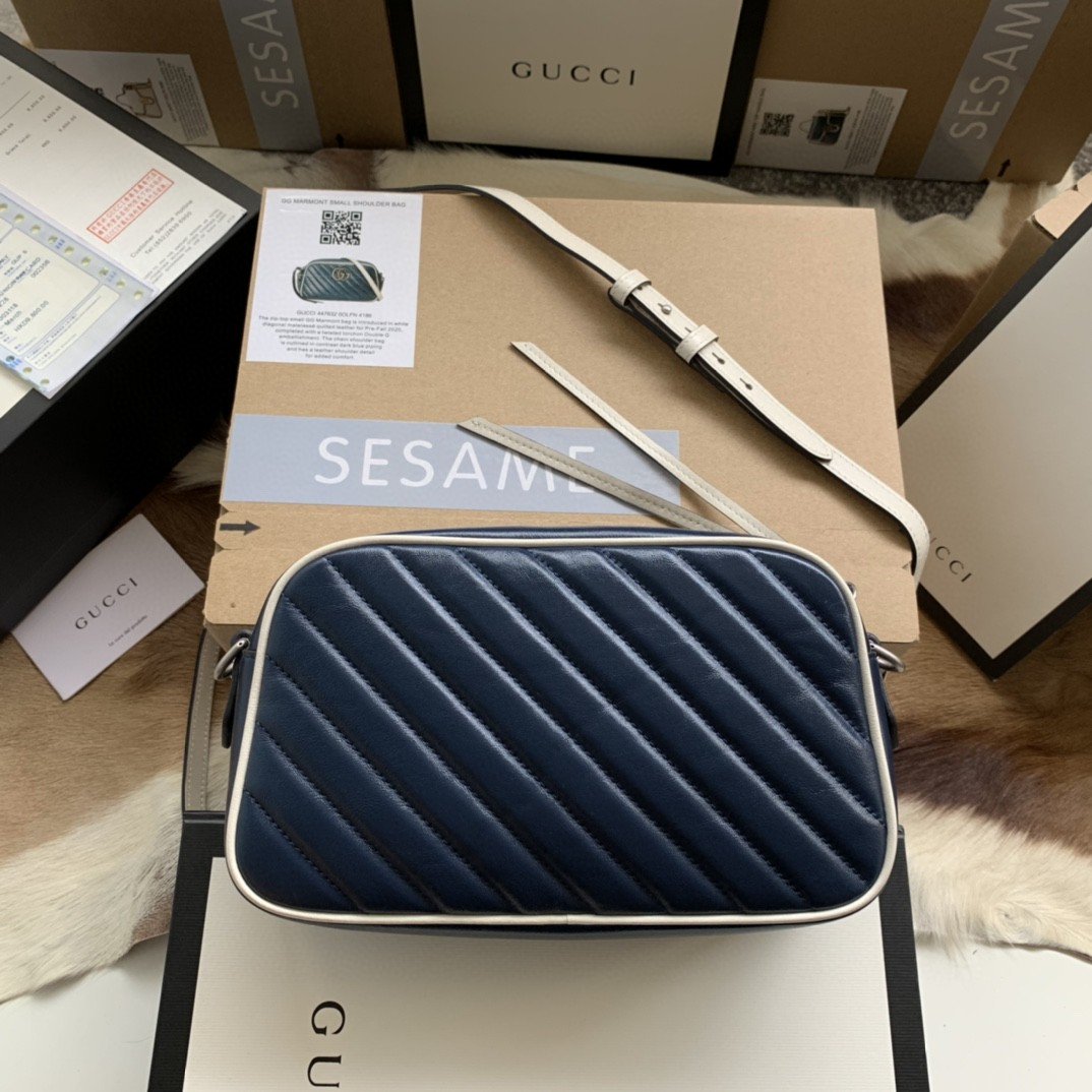 GG Marmont Matelassé Shoulder Bag Blue For Womtlm 9.5in/24cm GG