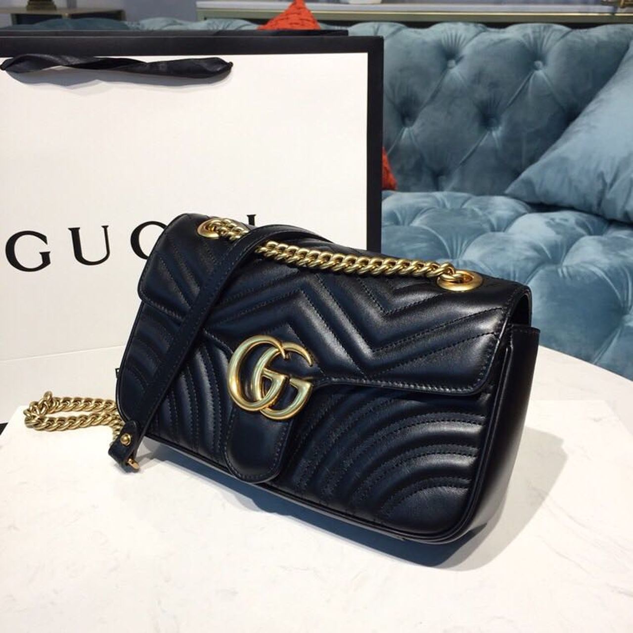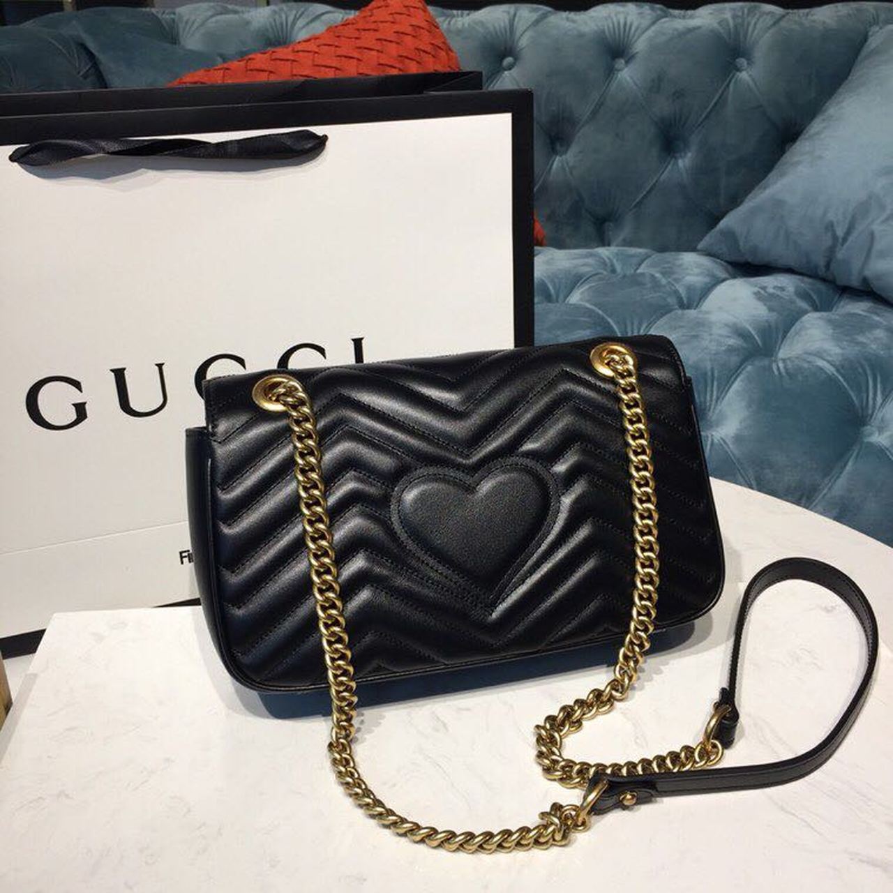 gg Marmont Small Matelassé Shoulder Bag Black Matelassé Chevron With A Heart For Women 10in/22cm gg 446744 DTDIT 1000