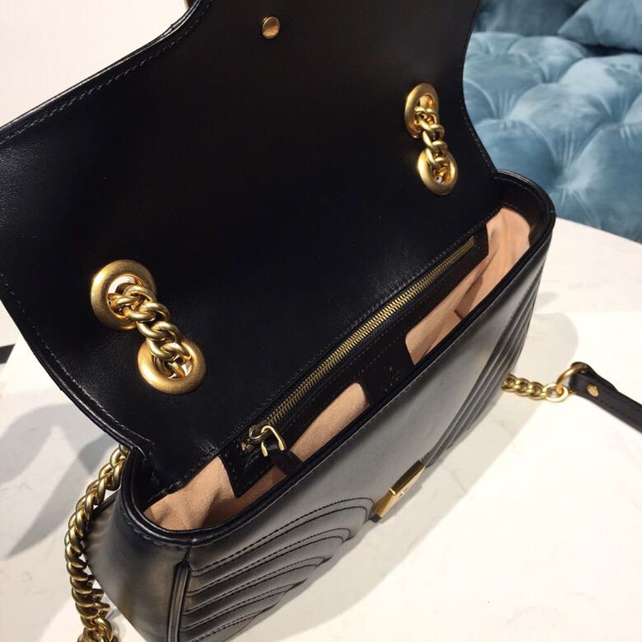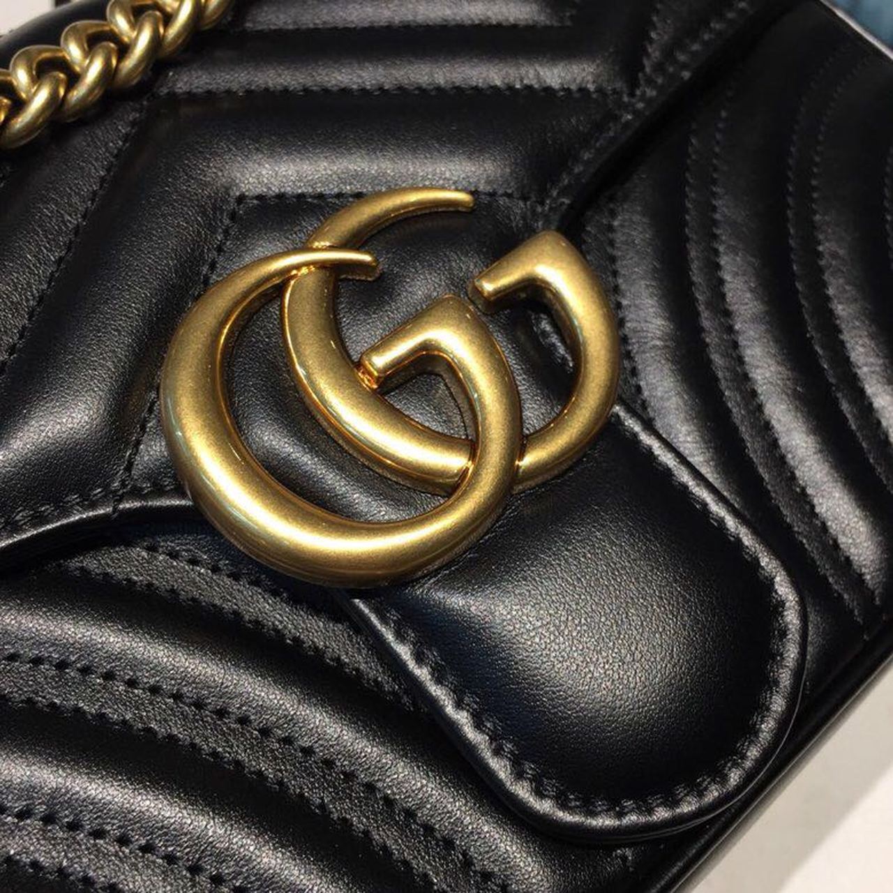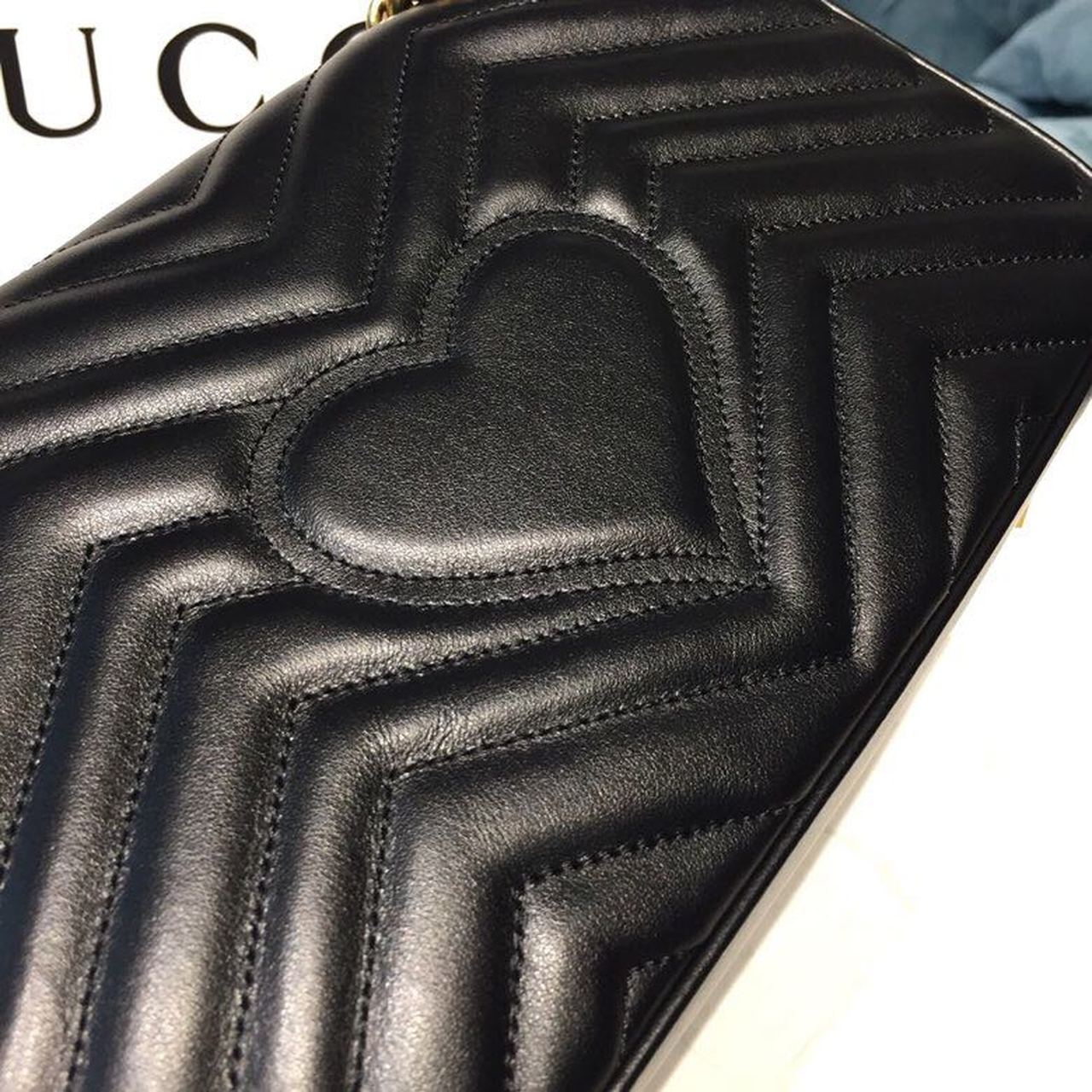 GG Marmont Small Matelassé Shoulder Bag Black Matelassé Chevron With A Heart For Women 10in/22cm GG 446744 DTDIT 1000