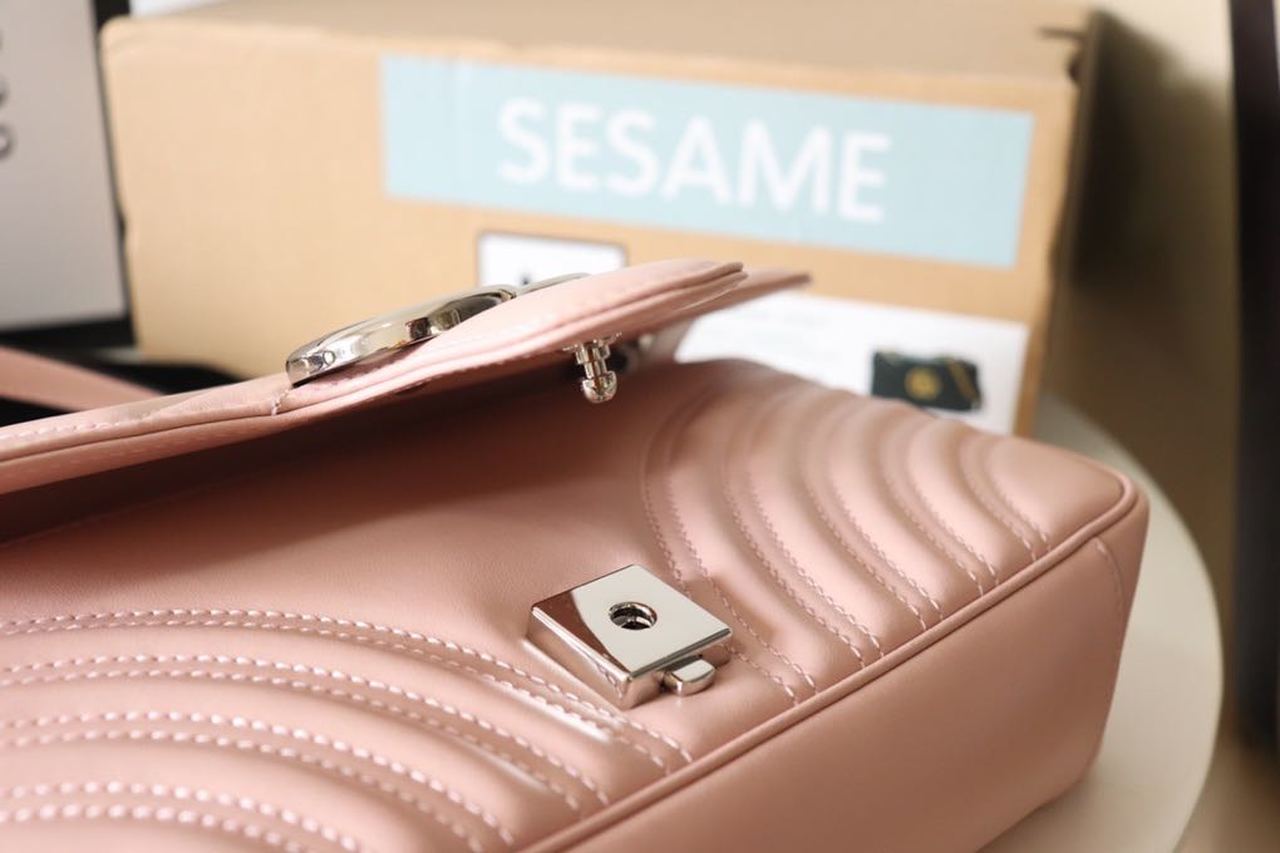 gg Marmont Small Matelassé Shoulder Bag Dusty Pink For Women 10in/26cm gg 443497