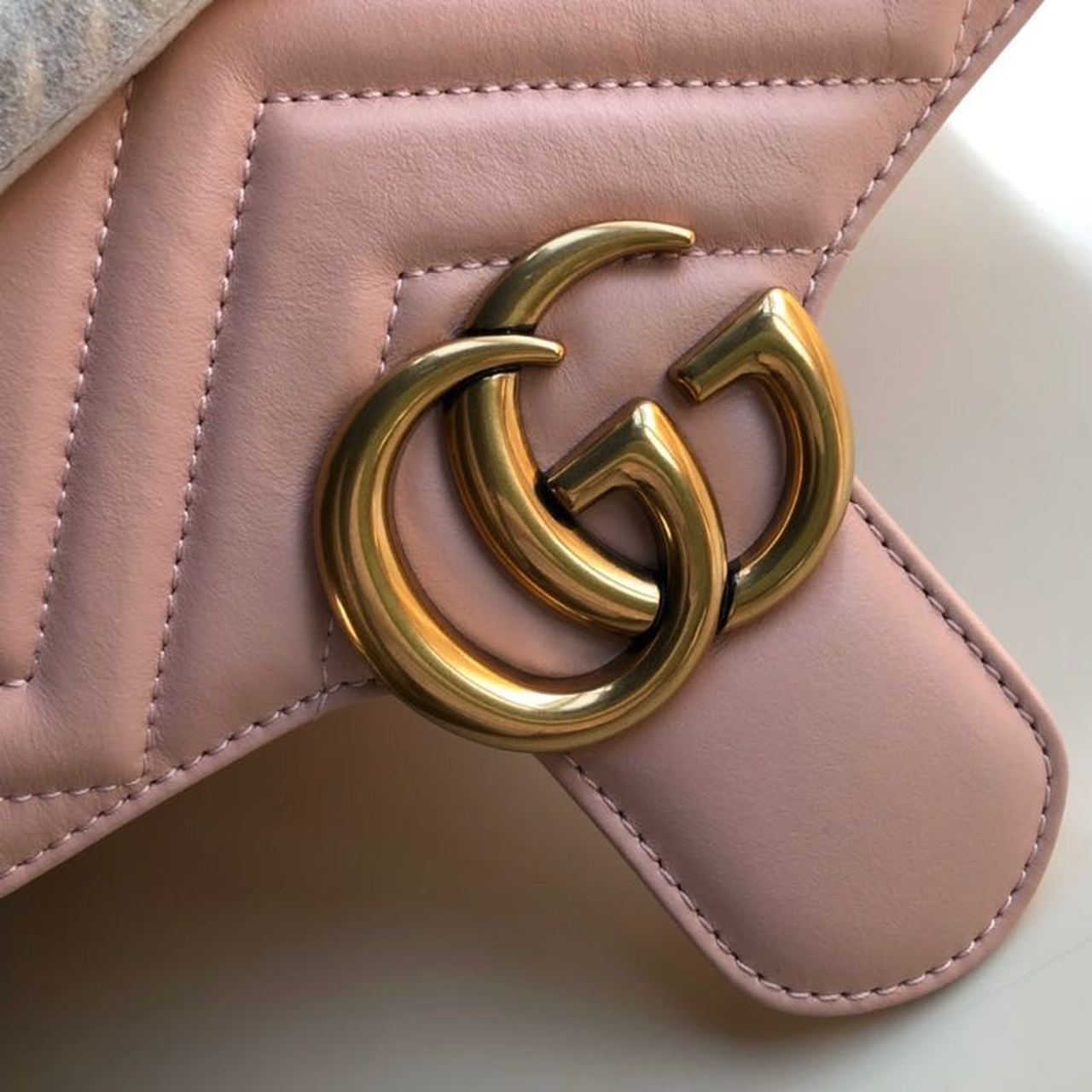 gg Marmont Small Matelassé Shoulder Bag Dusty Pink Matelassé Chevron For Women 10in/26cm gg 443497 DTDIT 5729