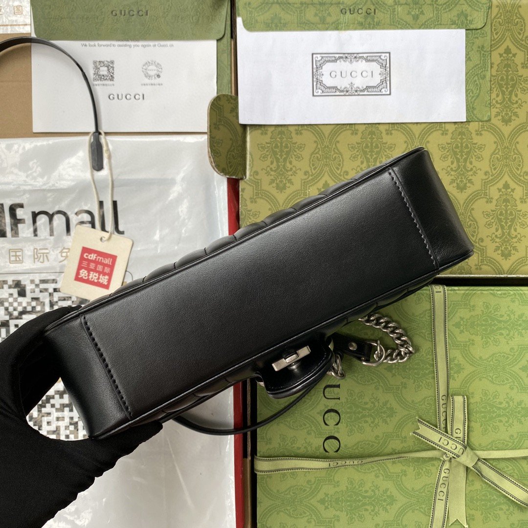 gg Marmont Small Shoulder Bag Black Matelassé For Women 10in/26cm 443497 UM8AN 1000