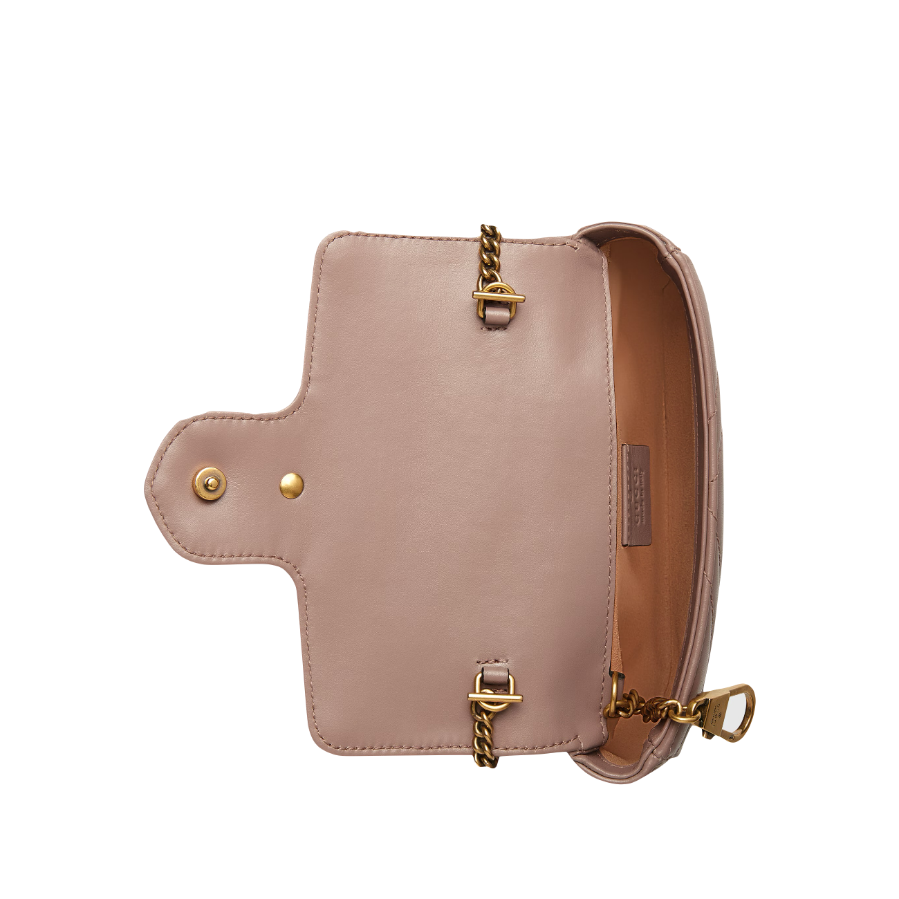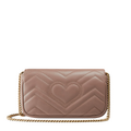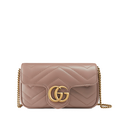 The GG Marmont mini bag perfectly blends timeless elegance and modern practicality. Its sleek, compact silhouette features Gucci’s signature Double G hardware, a tribute to the brand's iconic designs from the '70s. Made from luxurious matelassé chevron leather, its flap closure adds a touch of sophistication, while the built-in key ring allows you to attach it to a larger bag for added convenience.