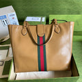 gg Medium Tote Bag With Double G And Web Brown For Womtlm 13.8in/35cm gg