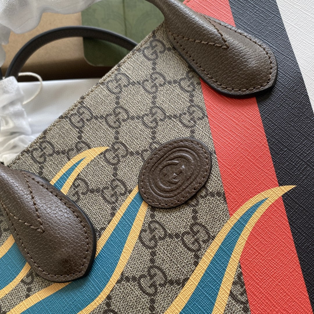 GG Medium Tote With Geometric Print Beige And Ebony GG Supreme Canvas With Geometric And Web Print For Women 14.8in/37.5cm GG 674148 UQHHG 8678
