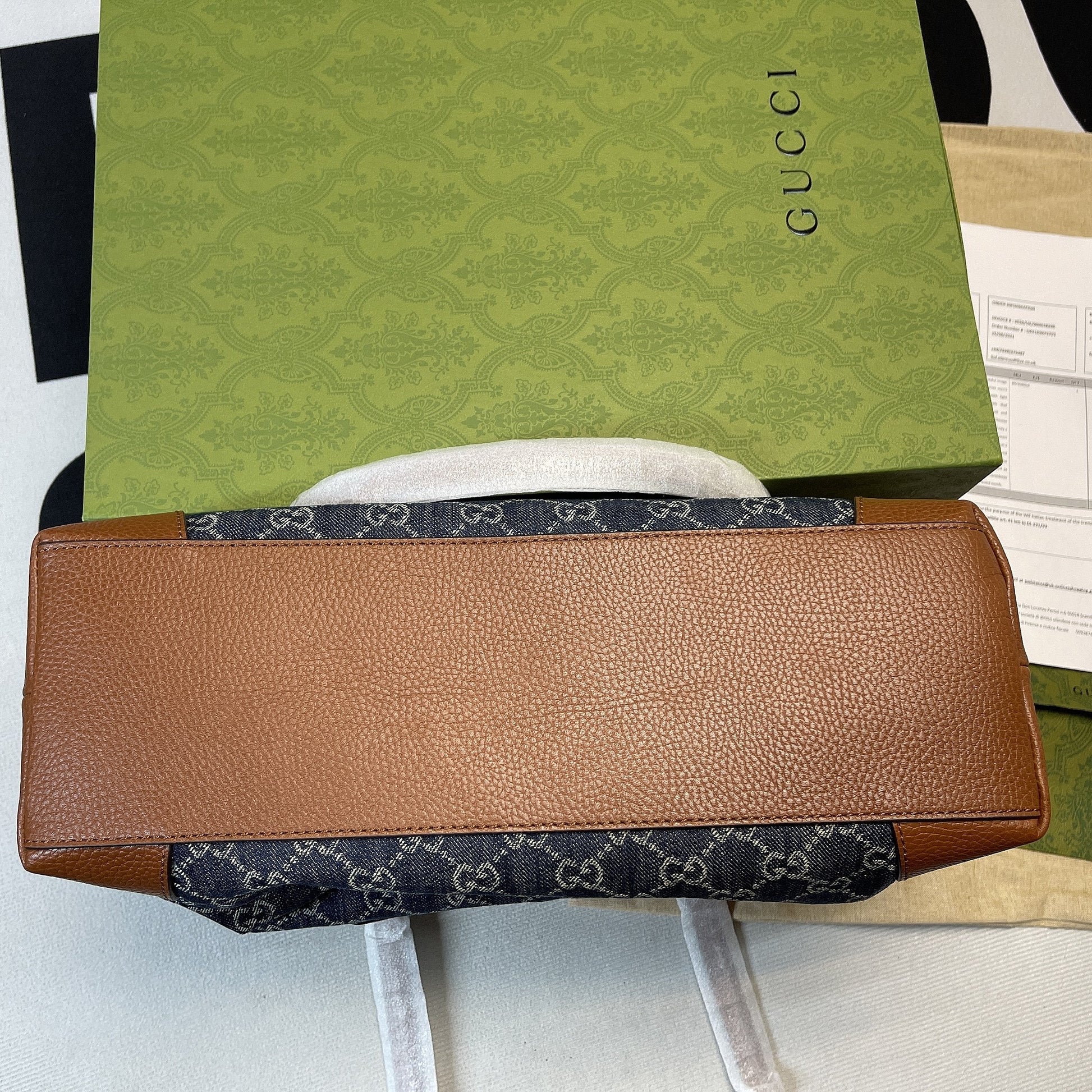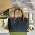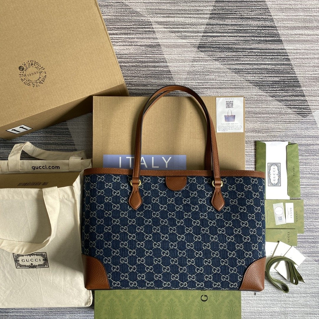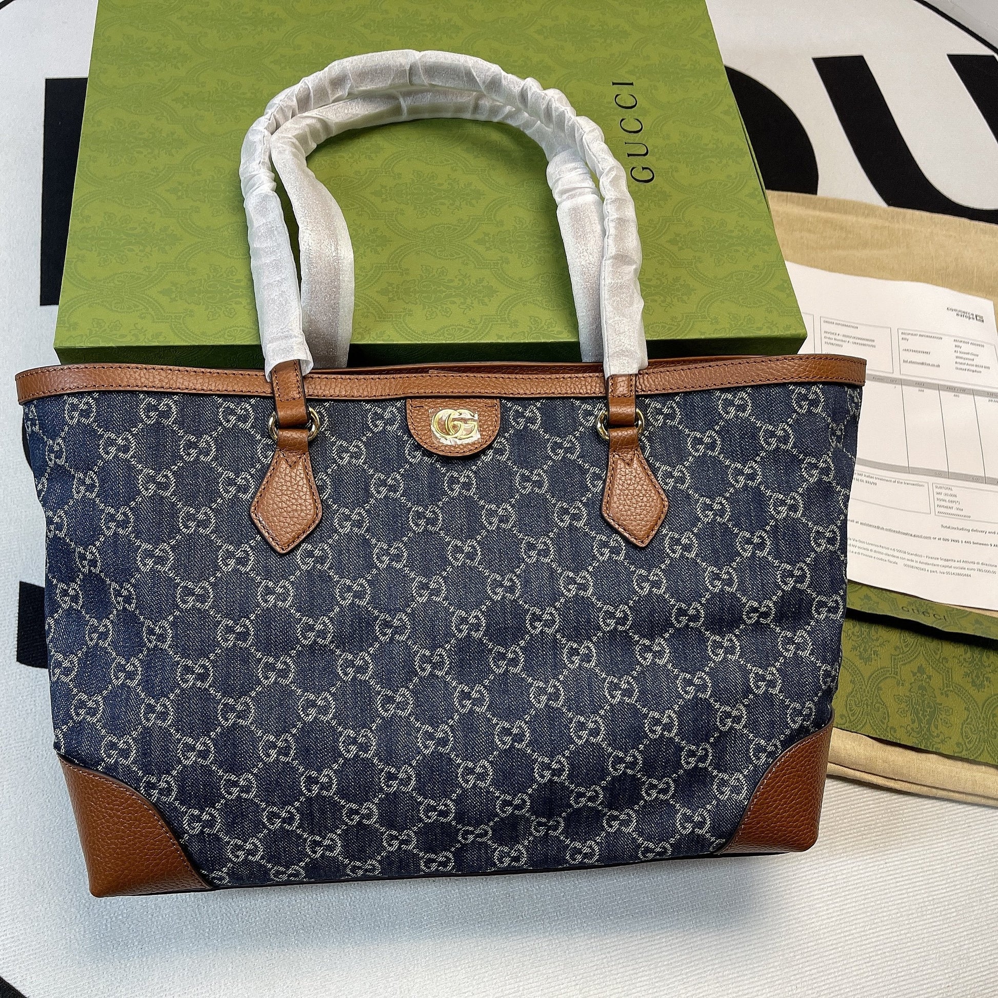 GG Ophidia GG Medium Tote Dark Blue And Ivory Eco Washed Organic GG Jacquard Denim For Women 15in/38cm GG ?631685 2KQGG 8375