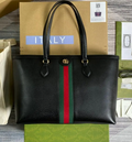 tlmriched with vintage details, the world of Ophidia expands with the introduction of a black tote bag. With a softly structured silhouette, the bag pairs two archival details as a tribute to the origins of the House. The Double G is a refertlmce to GGo GG’s monogram while the gretlm and red Web stripe is a cTLMbration of the brand’s equestrian roots.