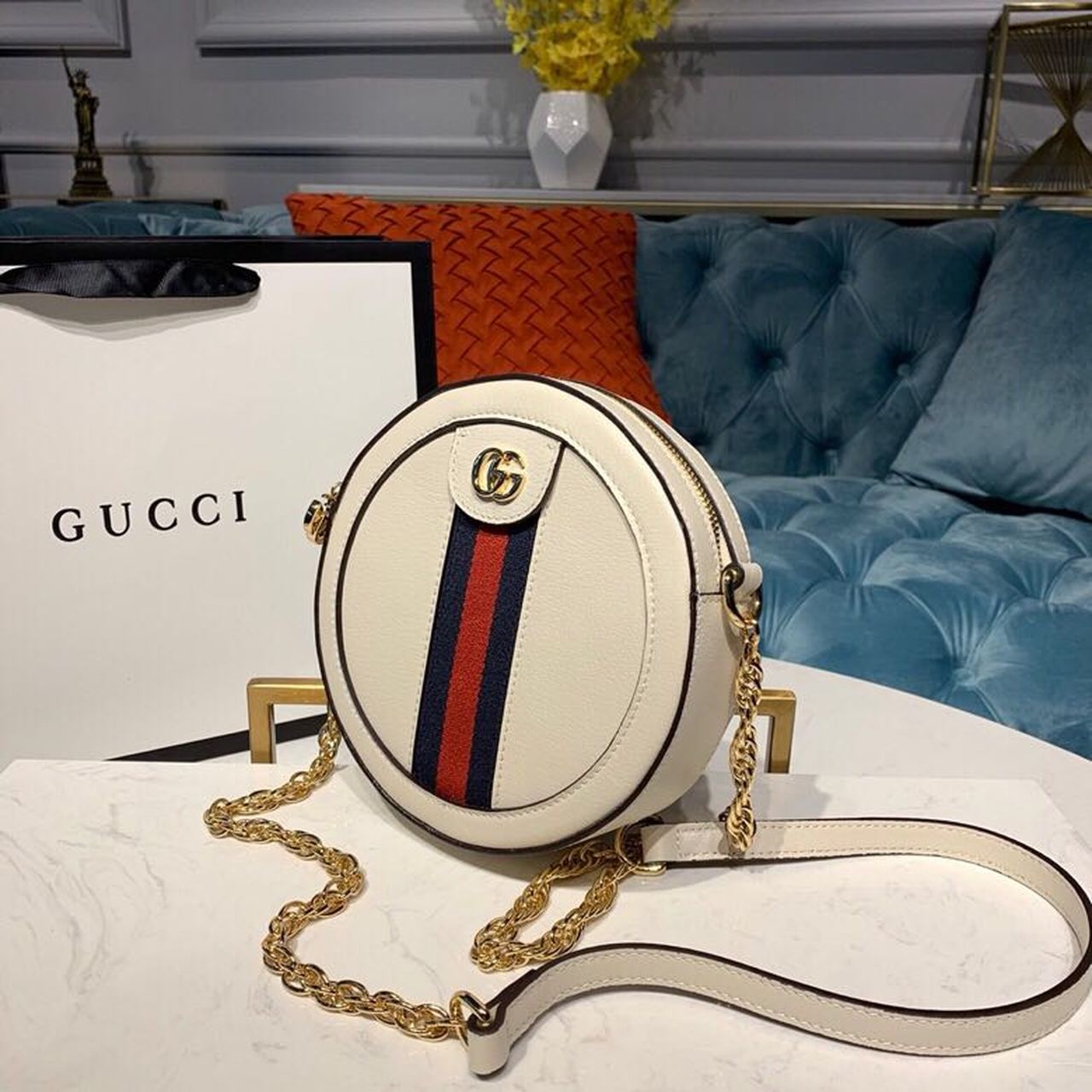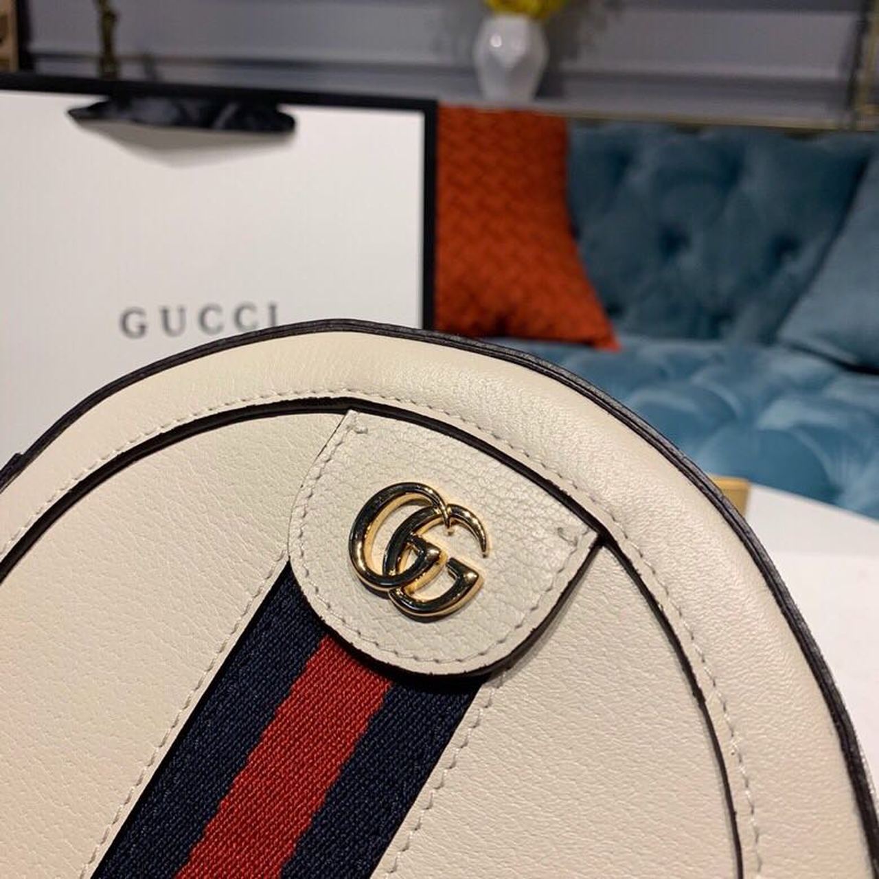GG Ophidia Mini GG Round Shoulder Bag White For Women 7in/18cm GG