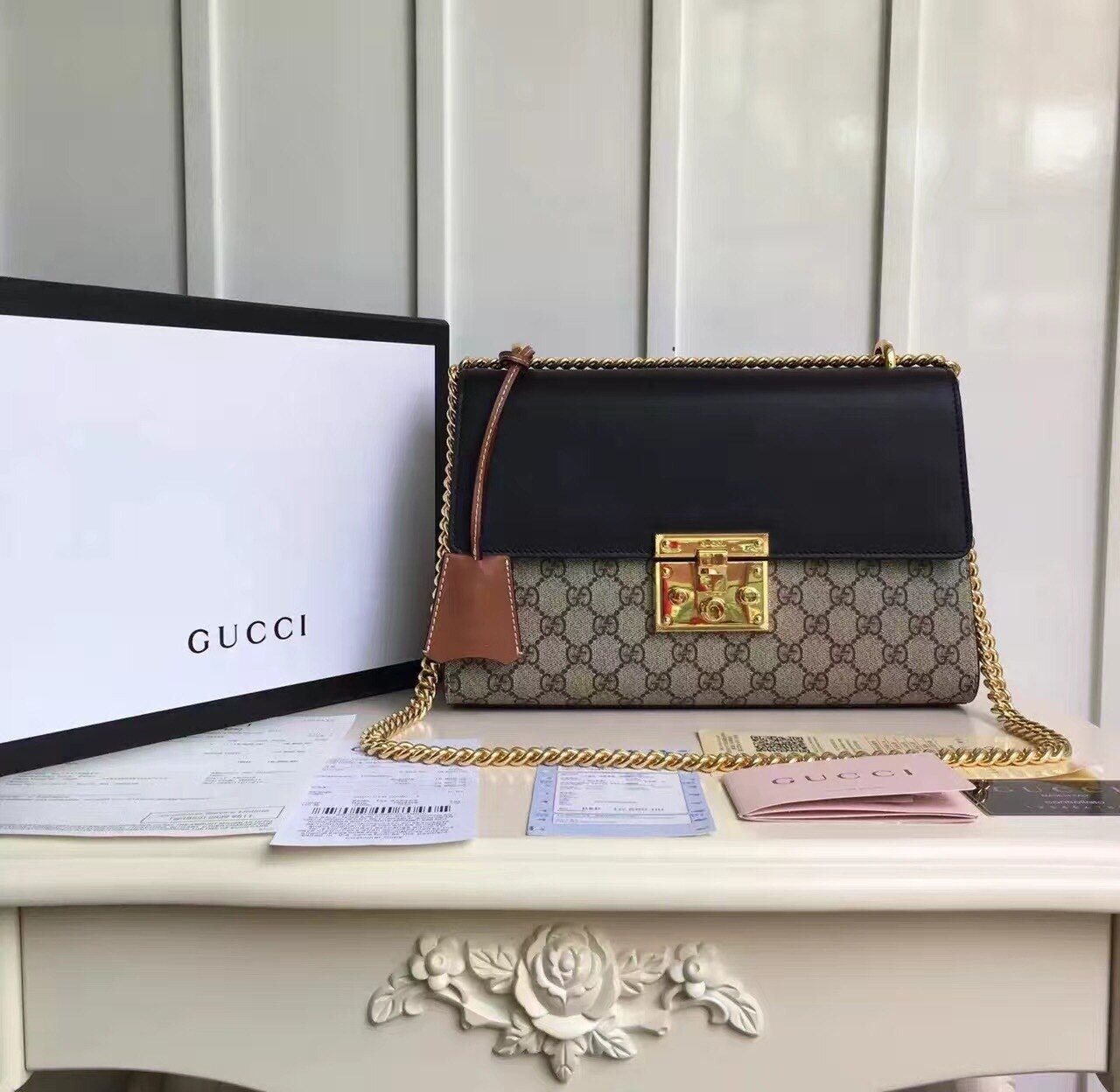 gg Padlock Medium gg Shoulder Bag Beige/Ebony Supreme Canvas For Women, Women’s Handbags, Crossbody Bags 12in/30cm gg 409486