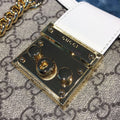 A structured shoulder bag in GG Supreme canvas with a strap that secures with a key lock closure pulled straight from the archives. The key is placed in a detachable key case.