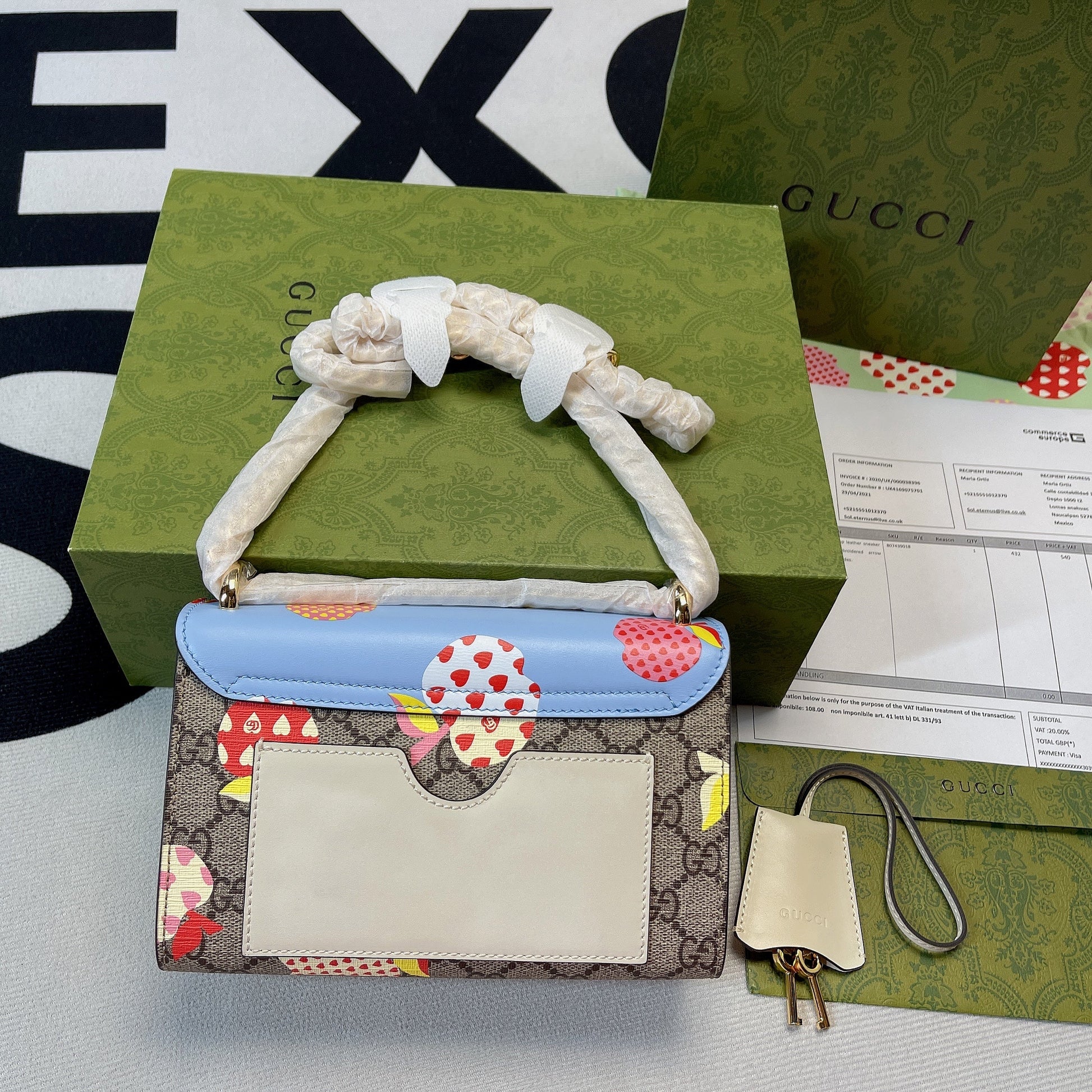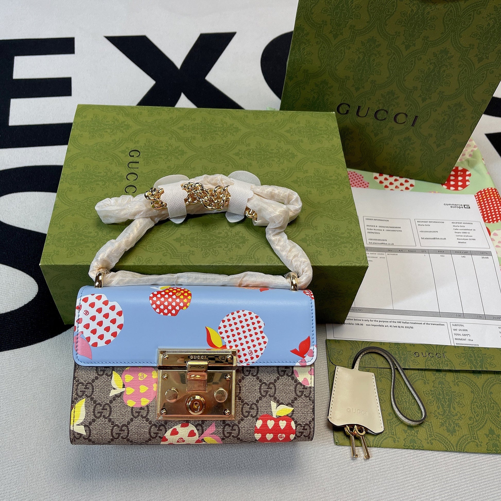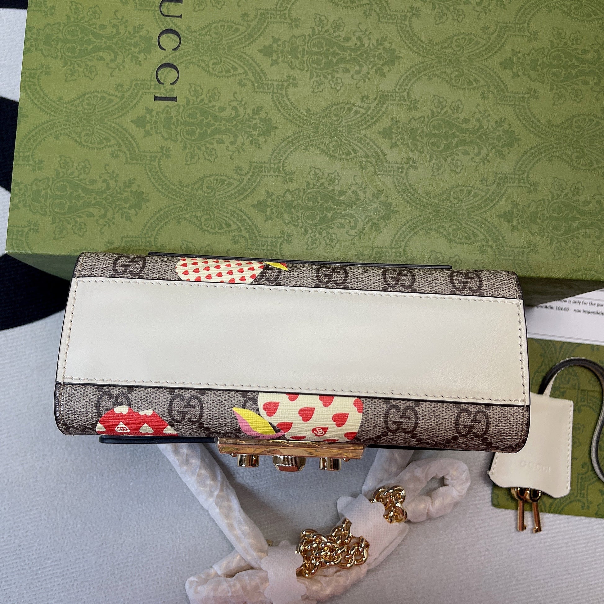 gg Padlock Small gg Strawberry Shoulder Bag Beige For Women, Women’s Bags 7.9in/20cm gg
