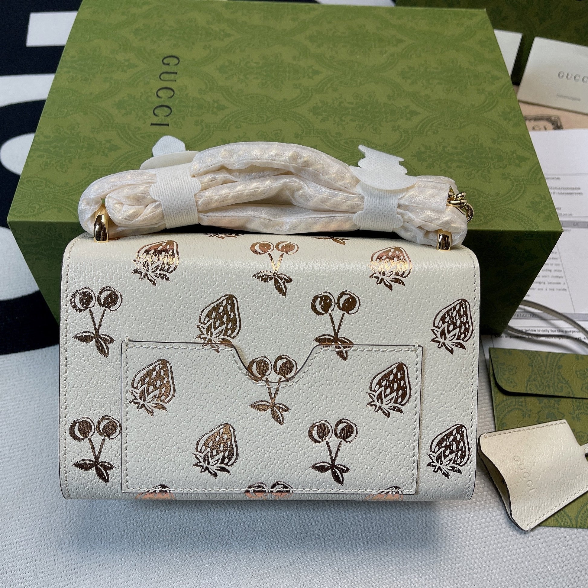 gg Padlock Small gg Strawberry Shoulder Bag White For Women, Women’s Bags 7.9in/20cm gg