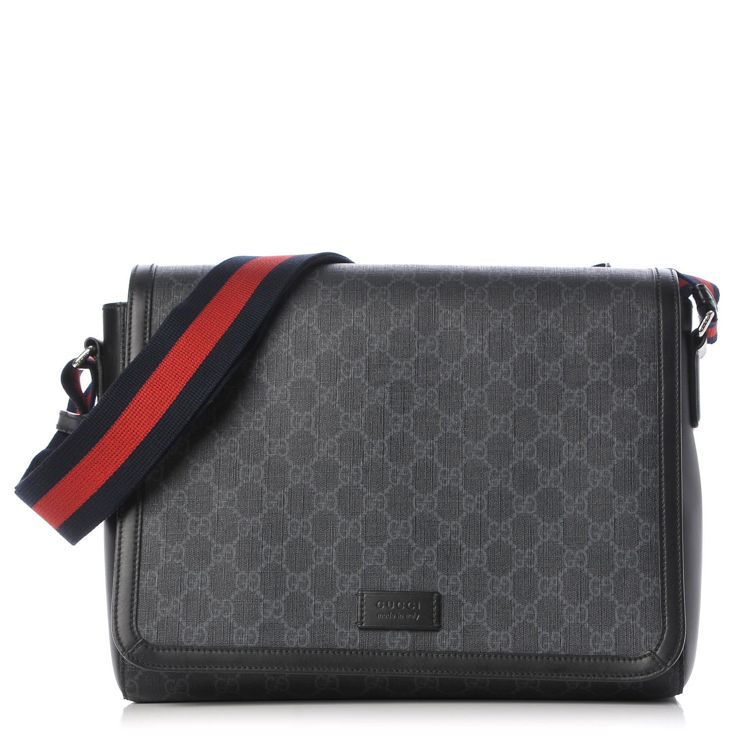 Gucci GG Supreme Monogram Web Flap Messenger Bag Black