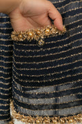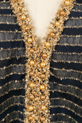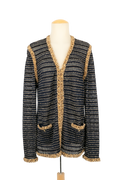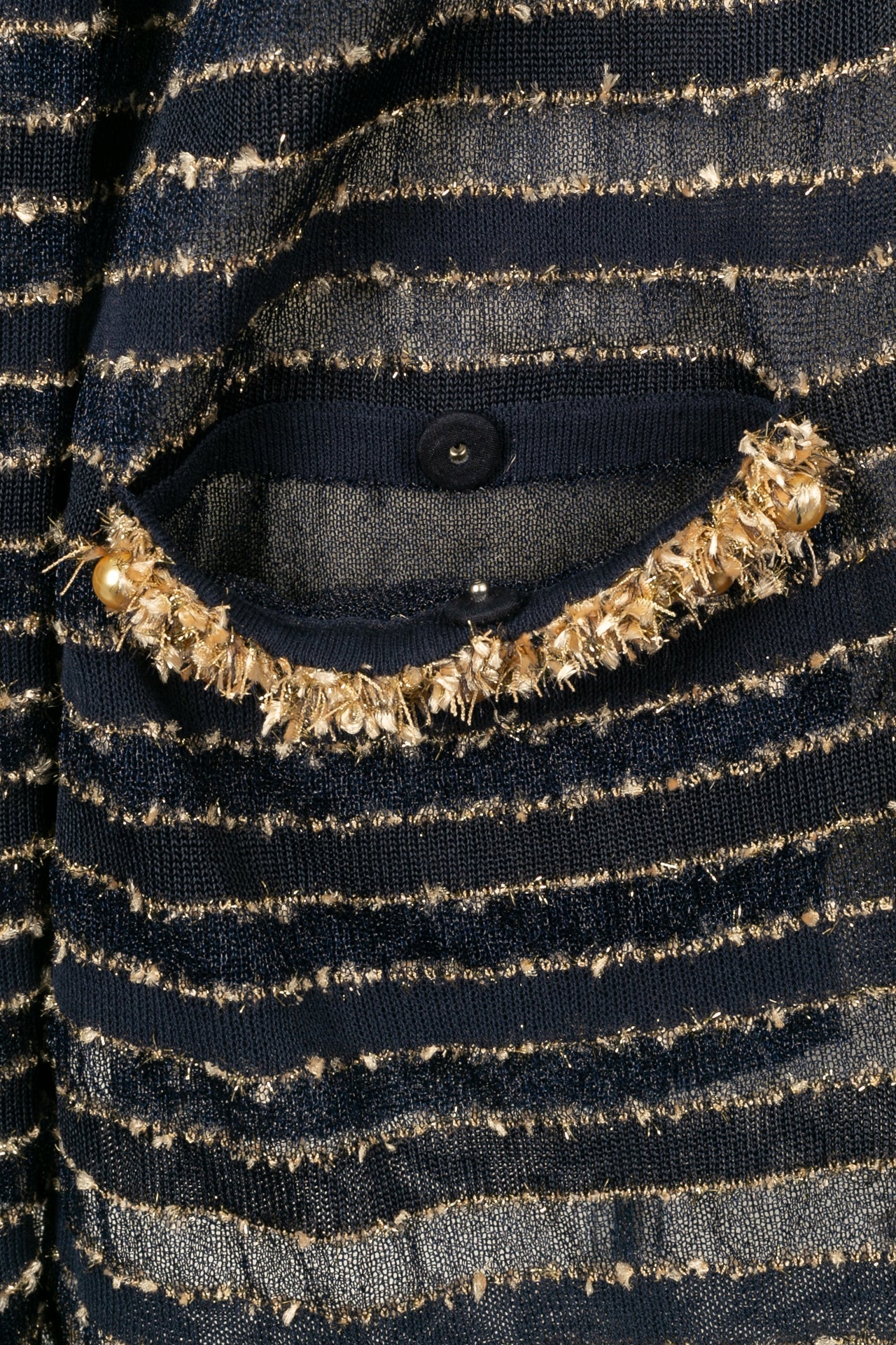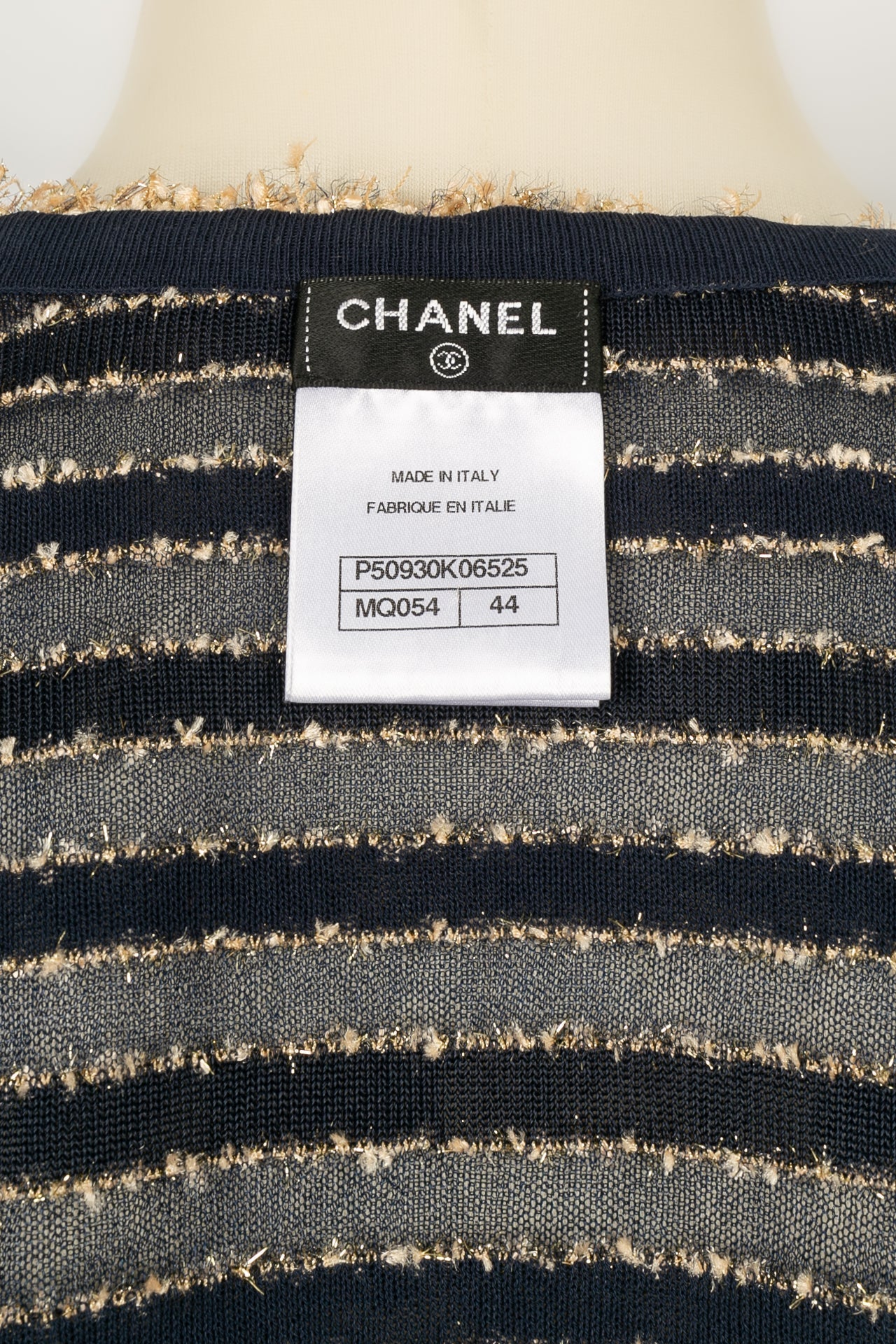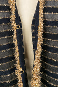 CHANEL - (Made in Italy) Gilet / veste l�g�re dans les tons de bleu rehauss�e de dor�. Taille 44.