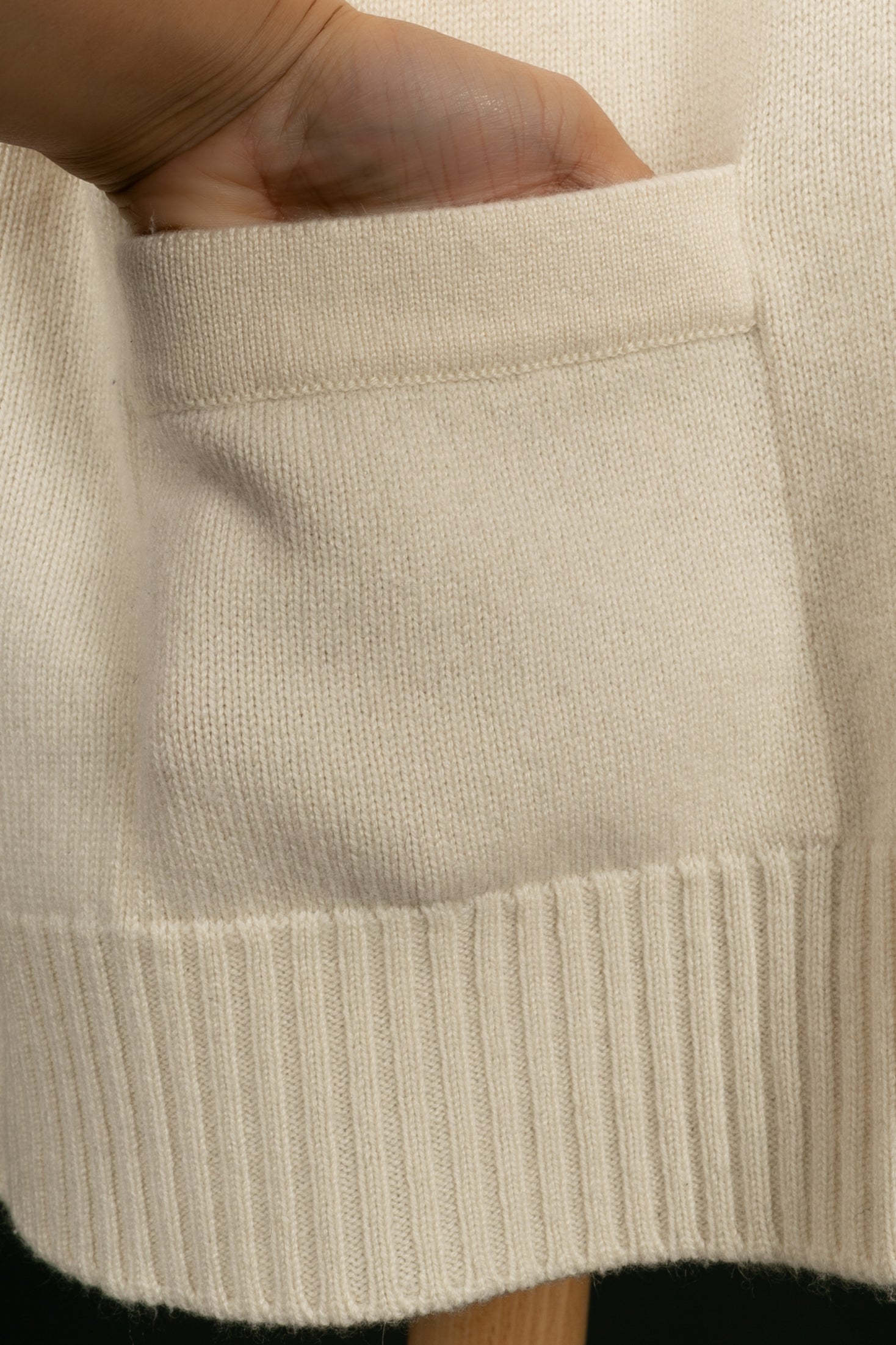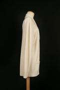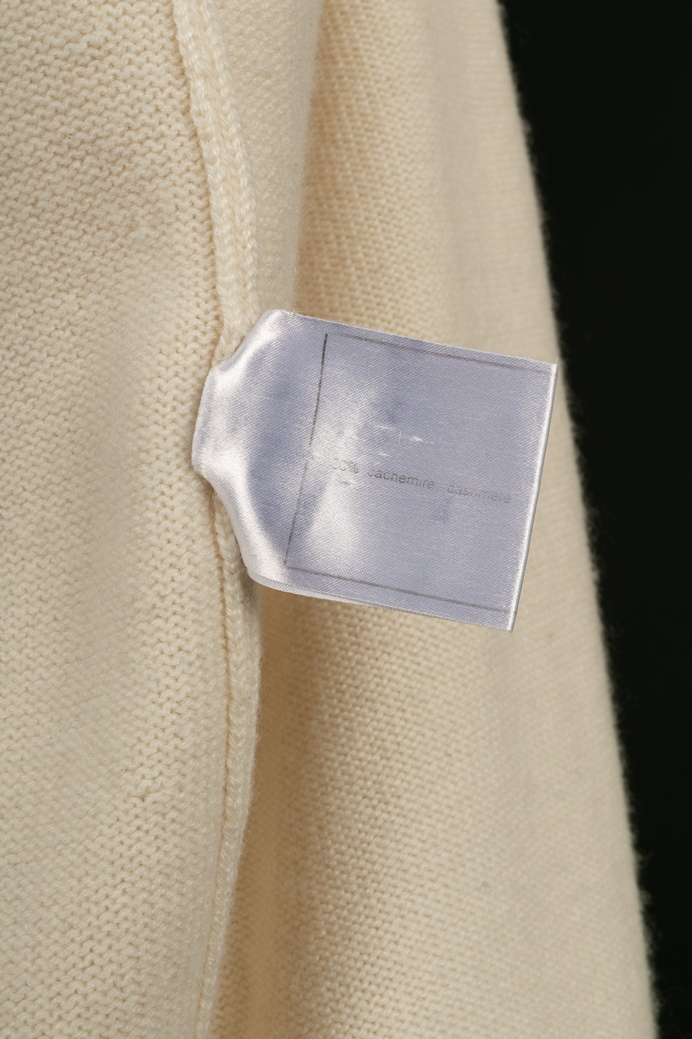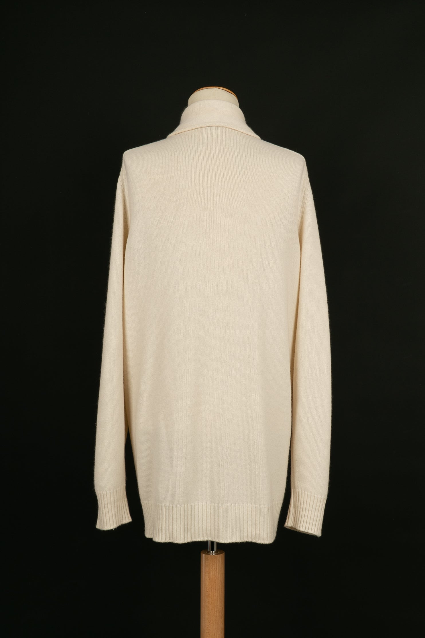 CHANEL - Gilet en cachemire blanc �crue et boutons en m�tal et r�sine. Pas de taille indiqu�e, il correspond � un 44FR.