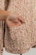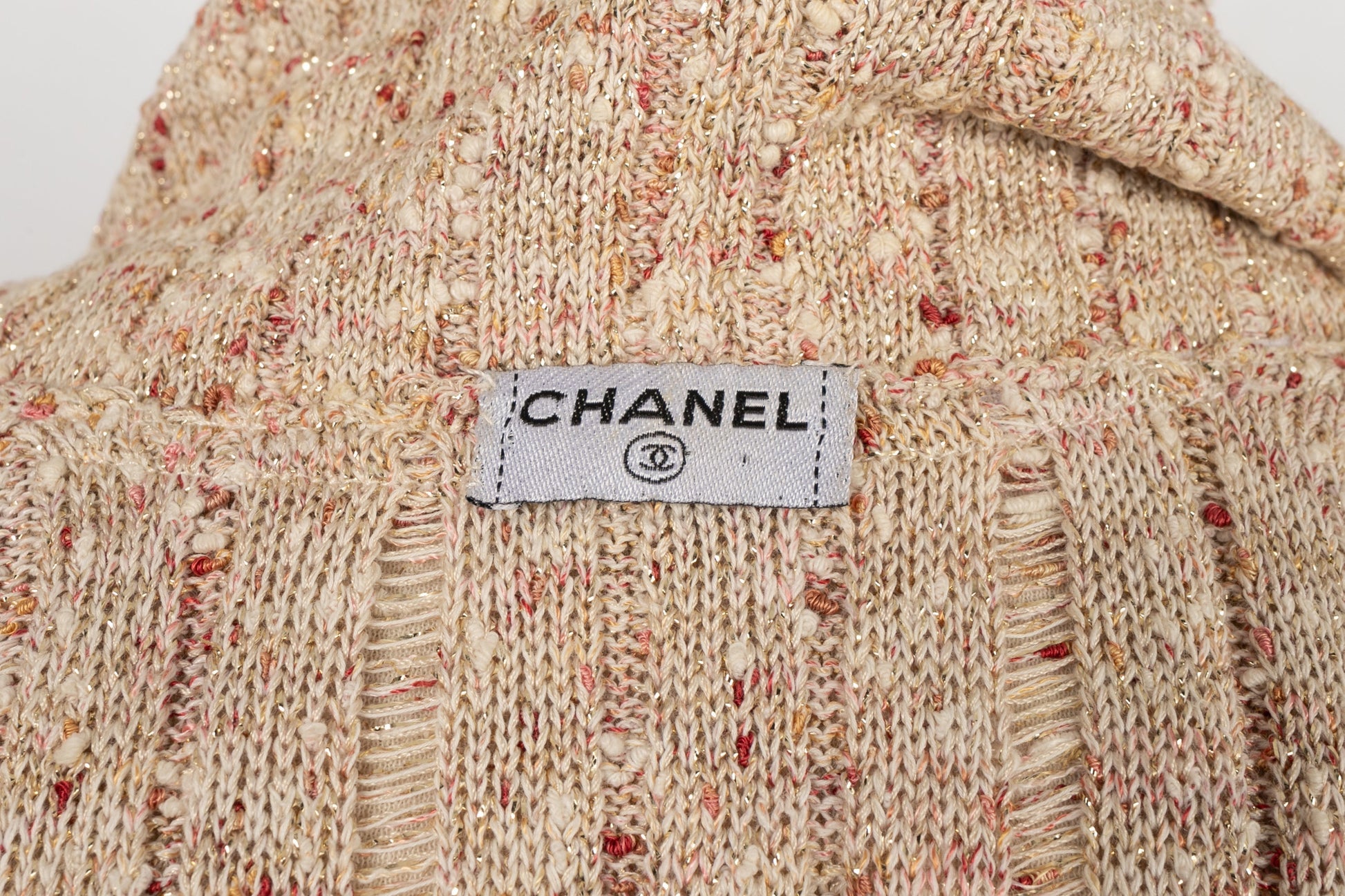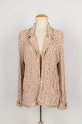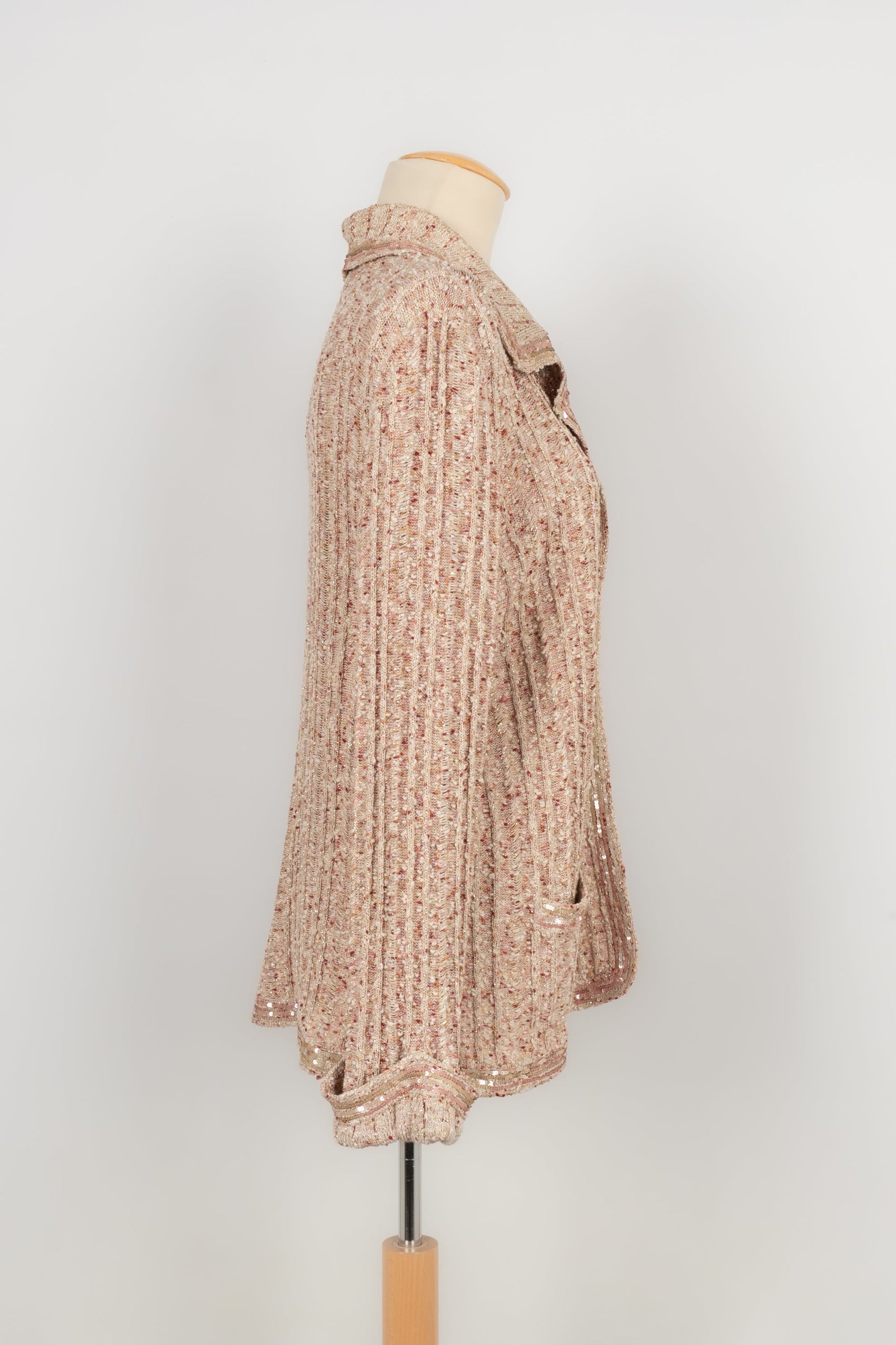 CHANEL - Gilet cousu de paillettes dans les tons de doré, rose et rouge. Etiquette de taille et de composition absentes, il convient à un 40FR.