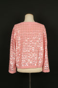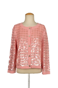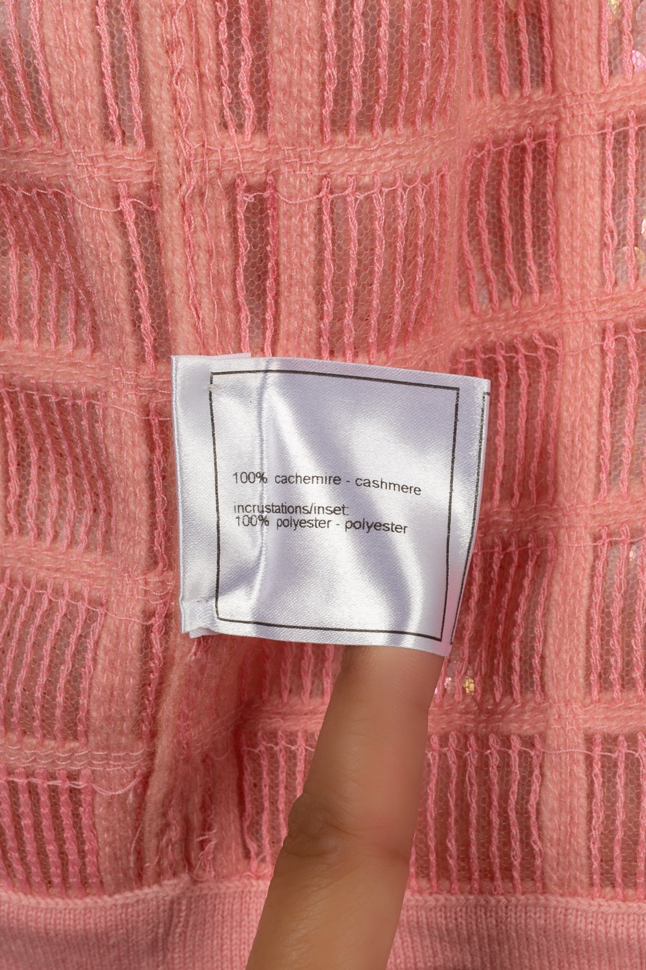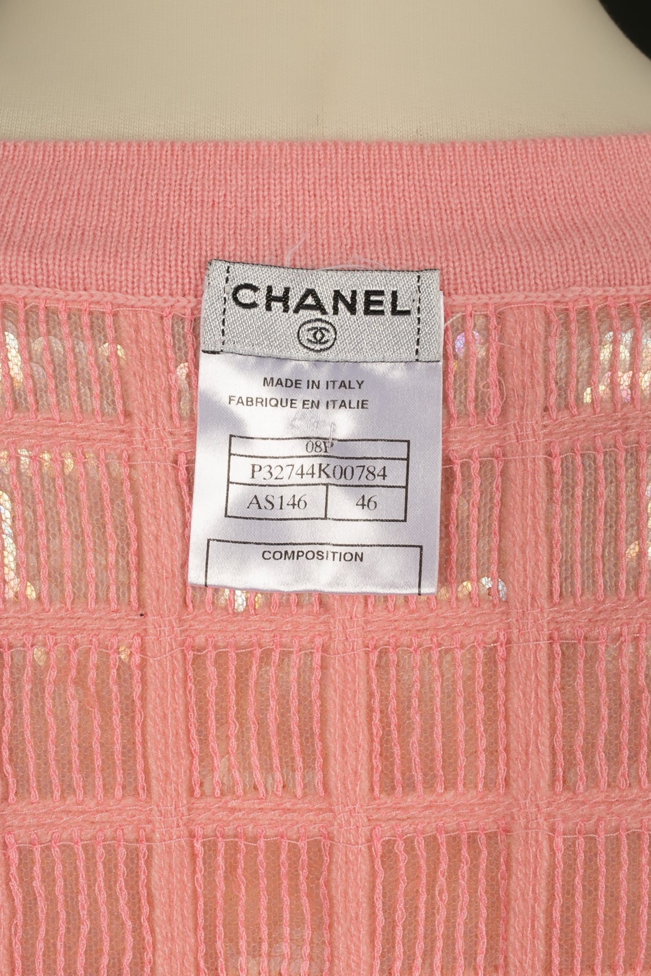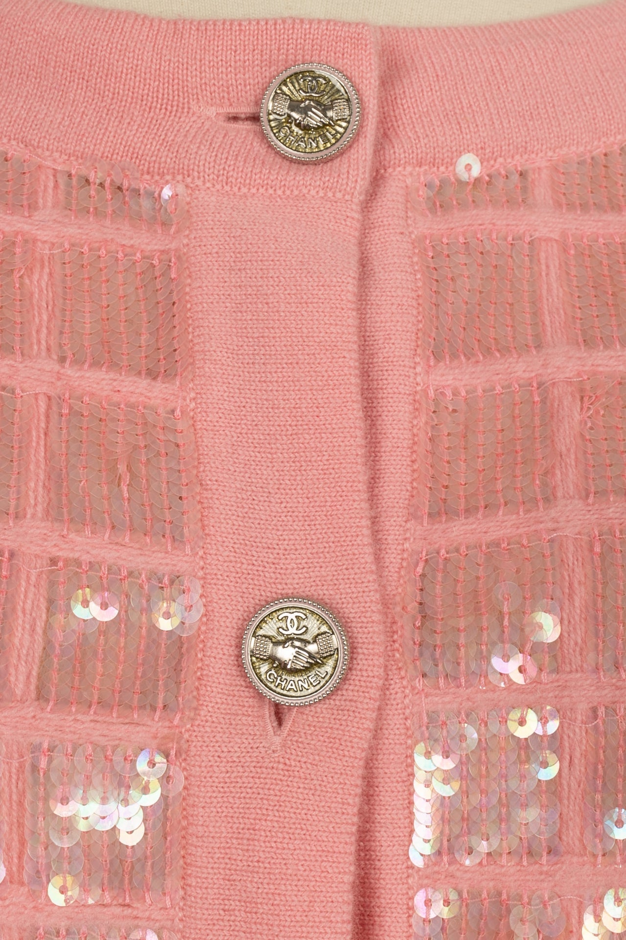 CHANEL - (made in Italy) GIlet en cachemire rose brod� de paillettes. Taille 46FR. Collection Printemps-Et� 2008.