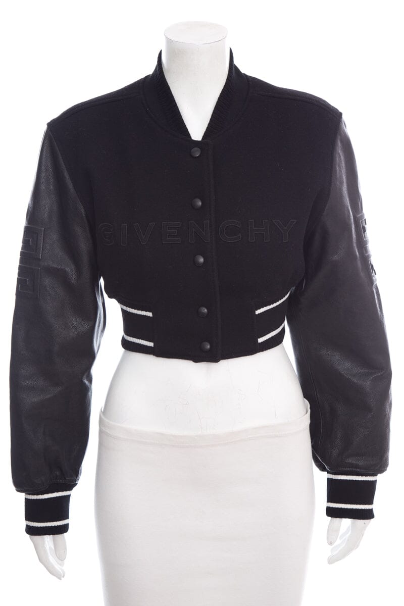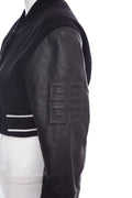 Givenchy Black Cropped Varsity Wool and Leather Jacket SZ 34