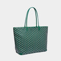 The Goyard Artois MM Bag is crafted with meticulous attention to detail, showcasing premium materials and impeccable craftsmanship. The exterior is made from durable Goyardine Canvas and Chevroches Calfskin, providing a luxurious yet resilient finish. The interior, lined with a linen and cotton blend, ensures a soft, lightweight, and refined feel. Palladium hardware adds a sleek, polished touch, while the structured design ensures durability and practicality. Measuring 30 cm x 17 cm x 50 cm and weighing 600 g, the Artois MM is perfectly sized for everyday essentials or travel needs.