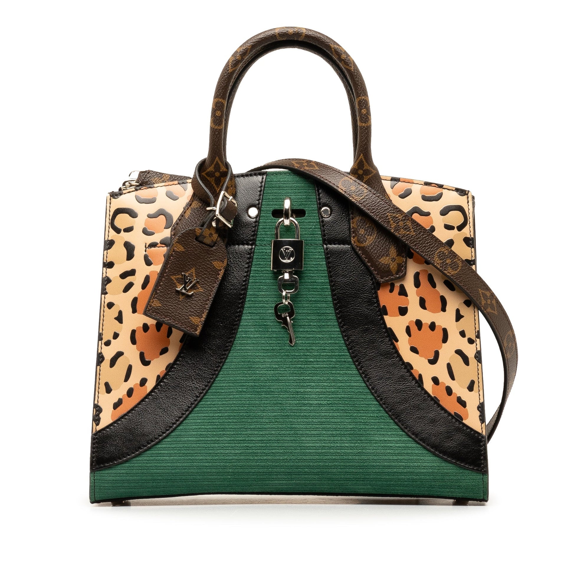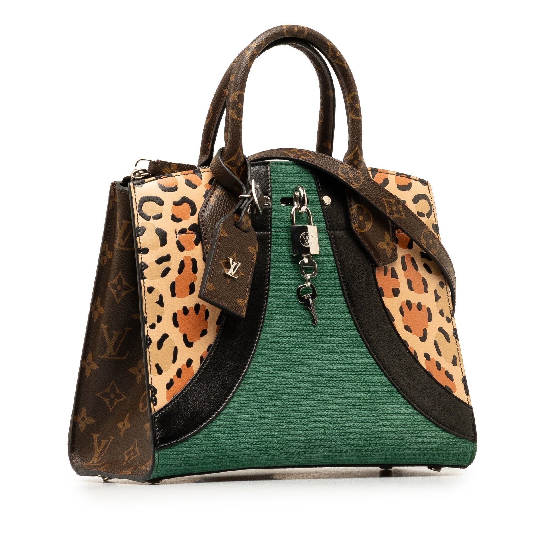 Green Louis Vuitton Monogram Leopard Print Calfskin Corduroy City Steamer PM Satchel