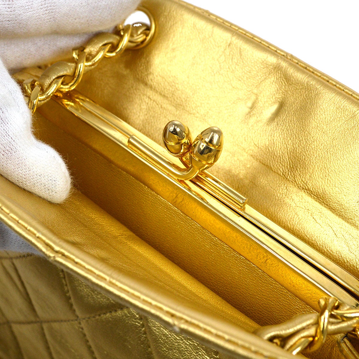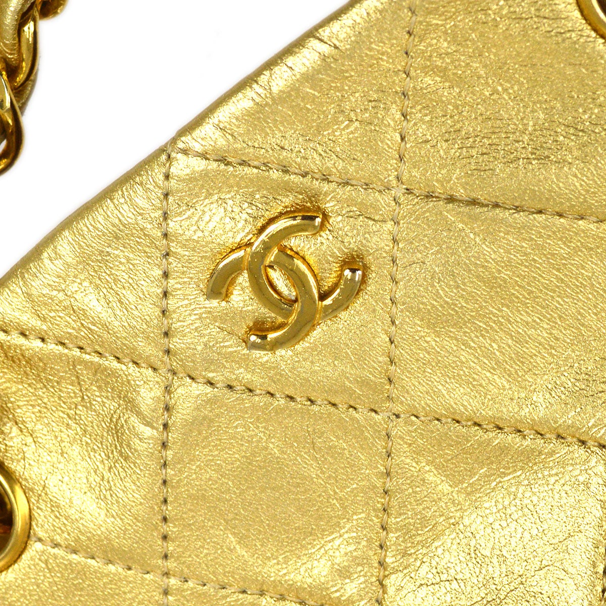 CHANEL 1989-1991 Gold Lambskin Chain Shoulder Bag