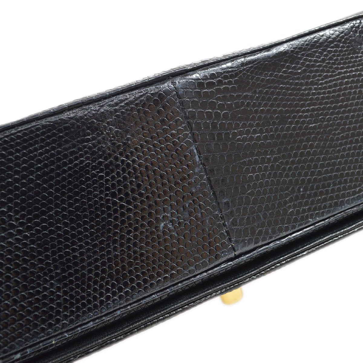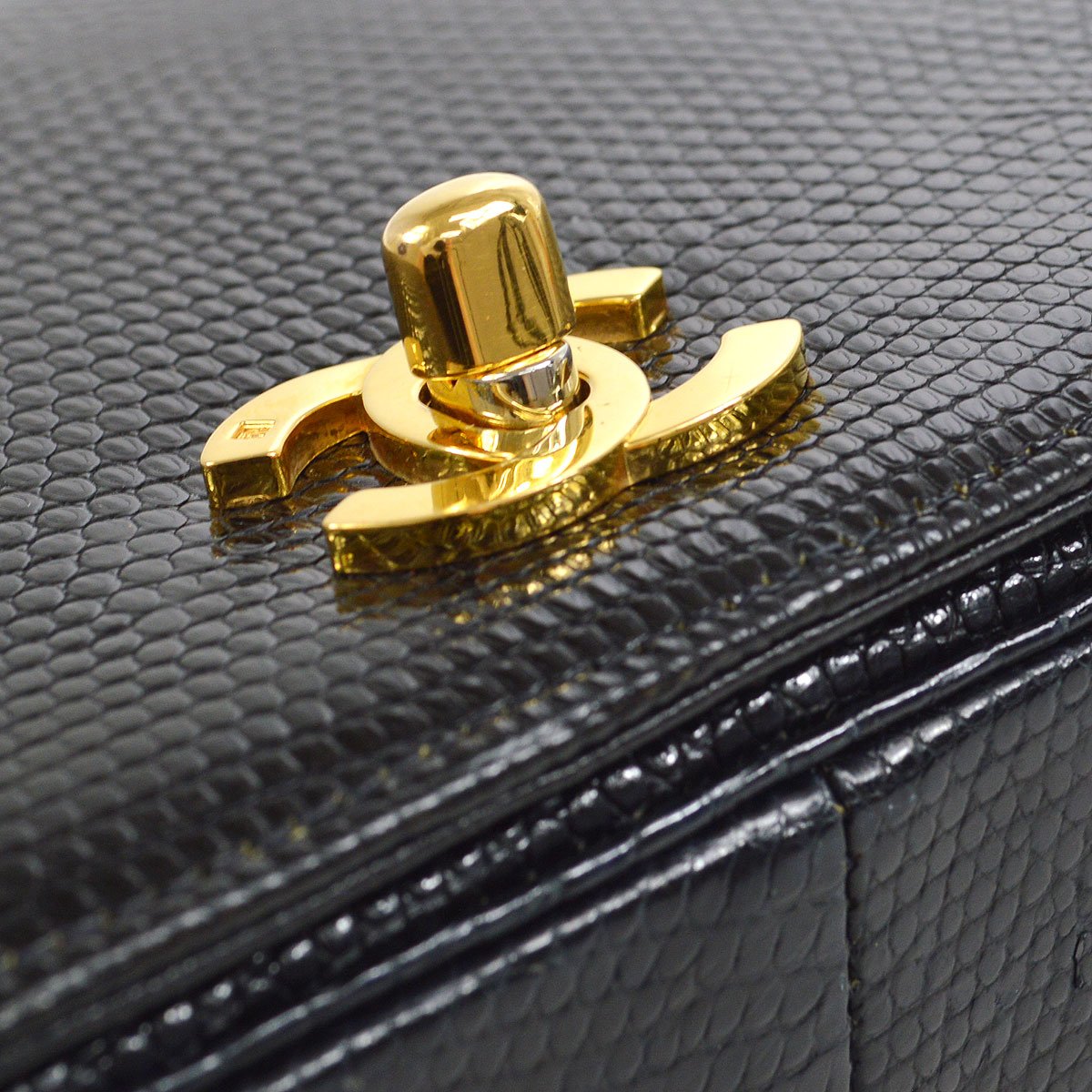 CHANEL * 1989-1991 Turnlock Full Flap Small Black Lizard