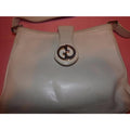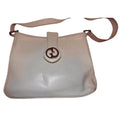 Vintage, mod, Gucci, white leather 1973 shoulder bag with a gold GG flap snap lock