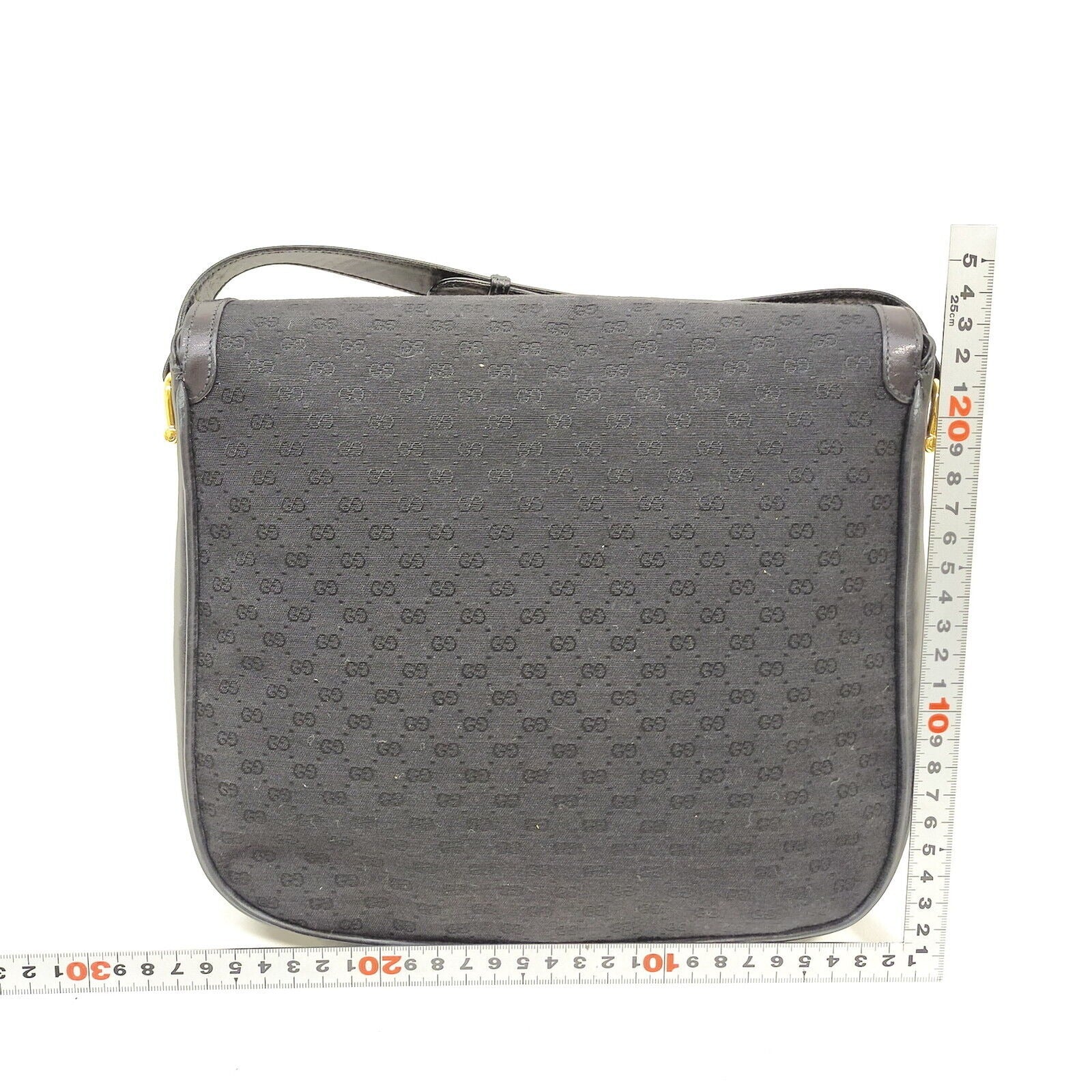 The bag is a large shoulder handbag. The body is made of blue micro Guccissima print on canvas and navy blue leather with bold gold hardware, including a large equestrian horse-bit accent in the center where it fastens and on the sides where the straps are attached! The square-shaped handbag can hold a lot more than you think!