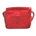 This style has been re-released by Gucci & is a must have! The bag is an envelope top, shoulder purse or cross body that is made of rich true red leather and suede with a bold, gold horse-bit equestrian accent at the center! The boxy, rectangular shaped purse has a structured appearance and a deep bottom, so it can hold a lot more than you might think! It has a long, adjustable, flat leather shoulder strap, allowing it to be worn as a shoulder or cross body style and an exterior pocket on the back.